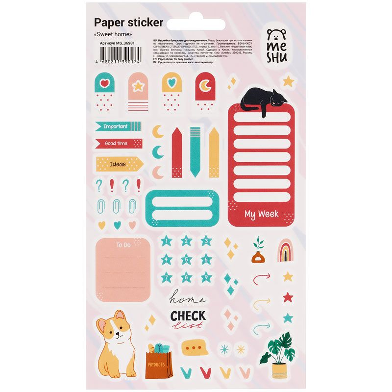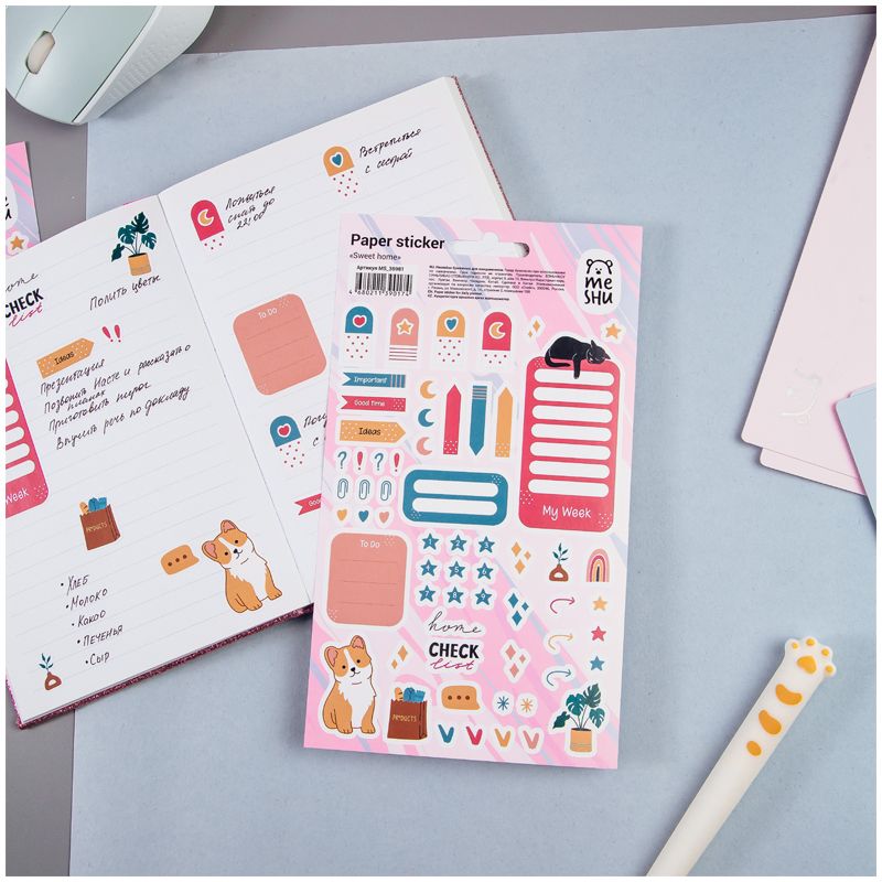 Бумажные наклейки для ежедневников MESHU Sweet home – отличный помощник в креативном оформлении записей в блокнотах и дневниках.