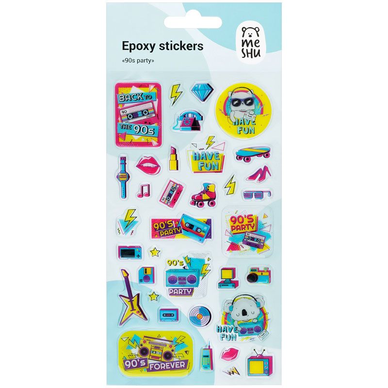 Наклейки MESHU 90th party из эпоксидной смолы идеально подходят для оформления записей, открыток, поделок, а также украшения канцтоваров, телефонов, ноутбуков, предметов интерьера.