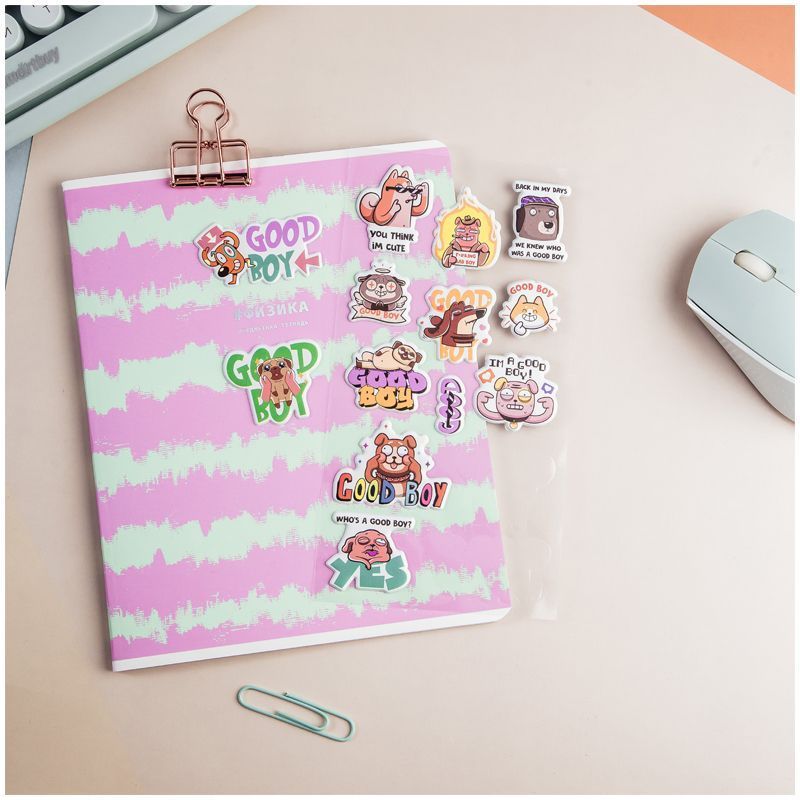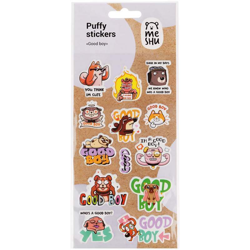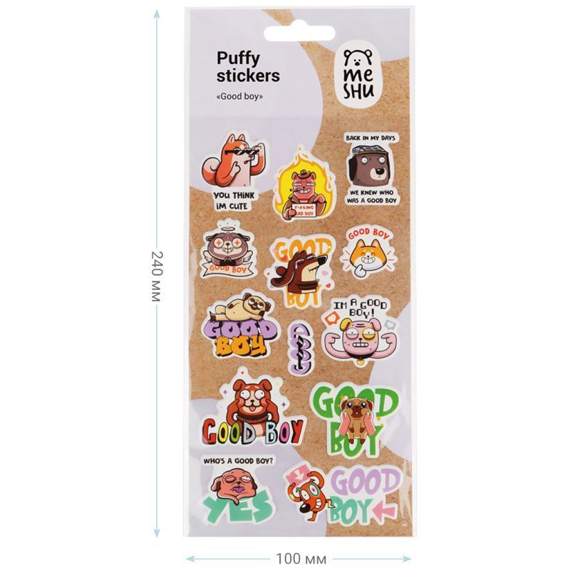 Наклейки MESHU можно приклеить на открытку, подарочную упаковку, обложку ежедневника или тетради, предметы интерьера, мобильный телефон, ноутбук или любой другой аксессуар. Легко отделяются от основы и надежно держатся, а также их можно отклеить от одной поверхности и использовать повторно, ведь они многоразовые. Набор наклеек упакован в пакет с европодвесом.