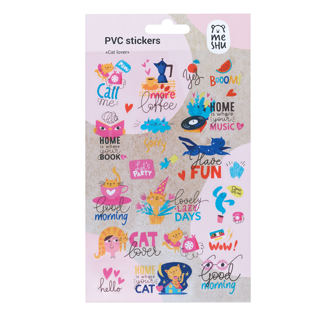 Наклейки MESHU Cat lover из ПВХ идеально подходят для оформления записей, открыток, поделок, а также украшения канцтоваров, телефонов, ноутбуков, предметов интерьера.