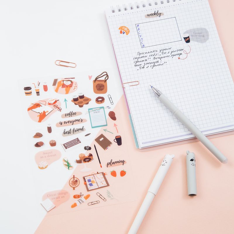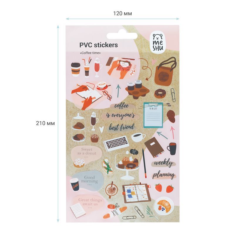 Наклейки MESHU Coffee time из ПВХ идеально подходят для оформления записей, открыток, поделок, а также украшения канцтоваров, телефонов, ноутбуков, предметов интерьера. Набор состоит из 1 листа размером 210 x 120 мм и включает в себя 43 наклеек. Яркие современные дизайны сделают творческий процесс увлекательным и подарят отличное настроение.