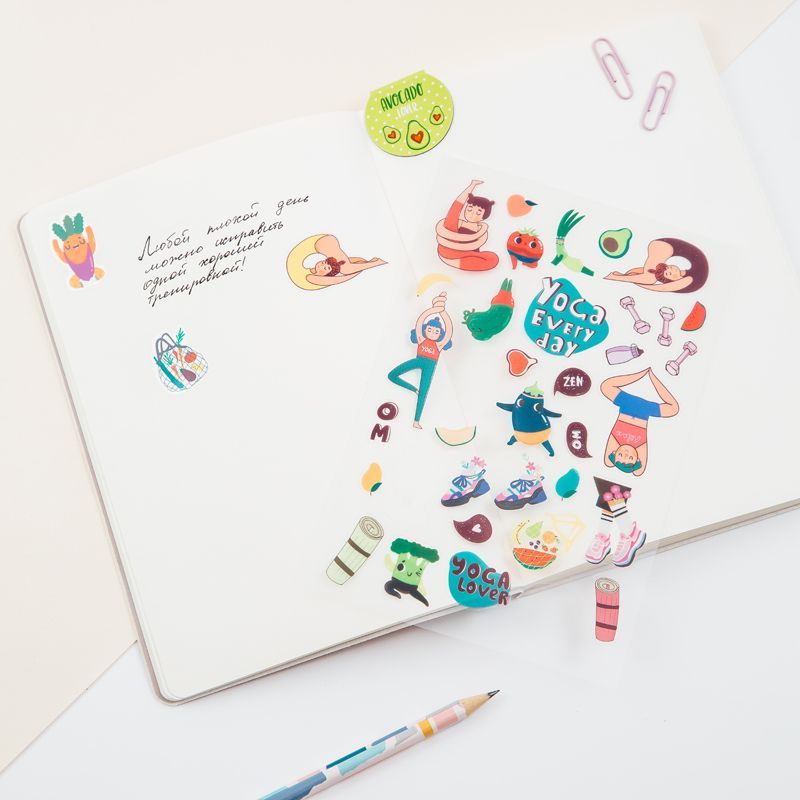 Наклейки MESHU Yoga lover из ПВХ идеально подходят для оформления записей, открыток, поделок, а также украшения канцтоваров, телефонов, ноутбуков, предметов интерьера.