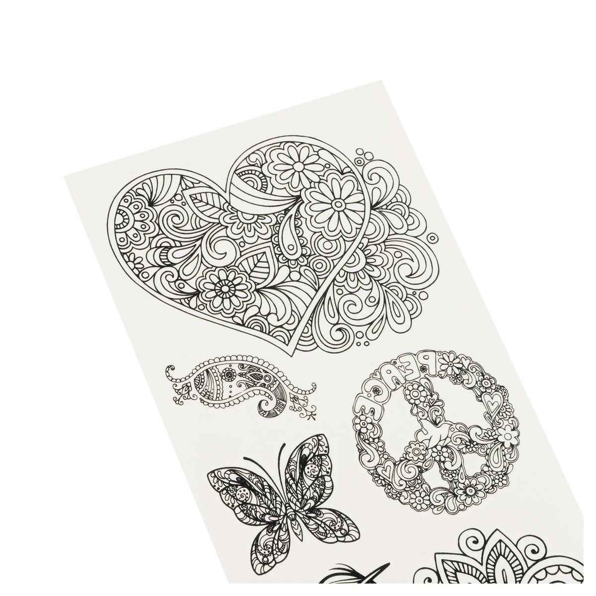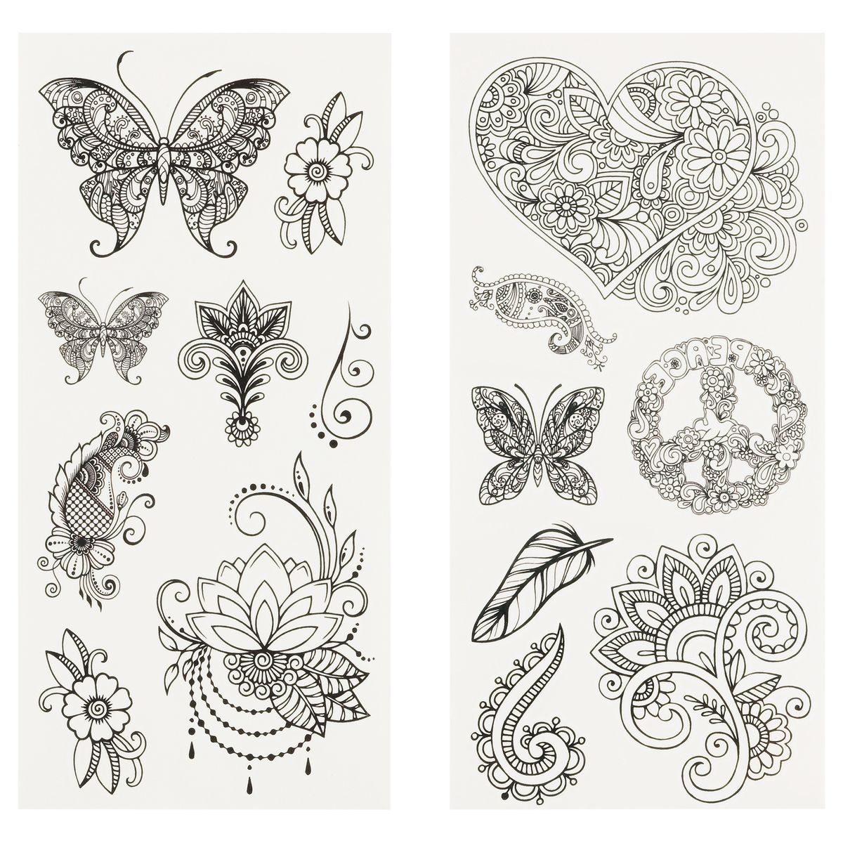 Временные тату легко наносятся, безопасны, не оставляют следов на коже после удаления. На бумажных листах размером 23*9 см помещаются 7 и 8 наклеек. Набор упакован в пакет с европодвесом.