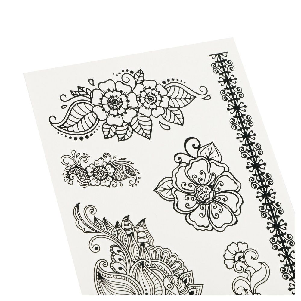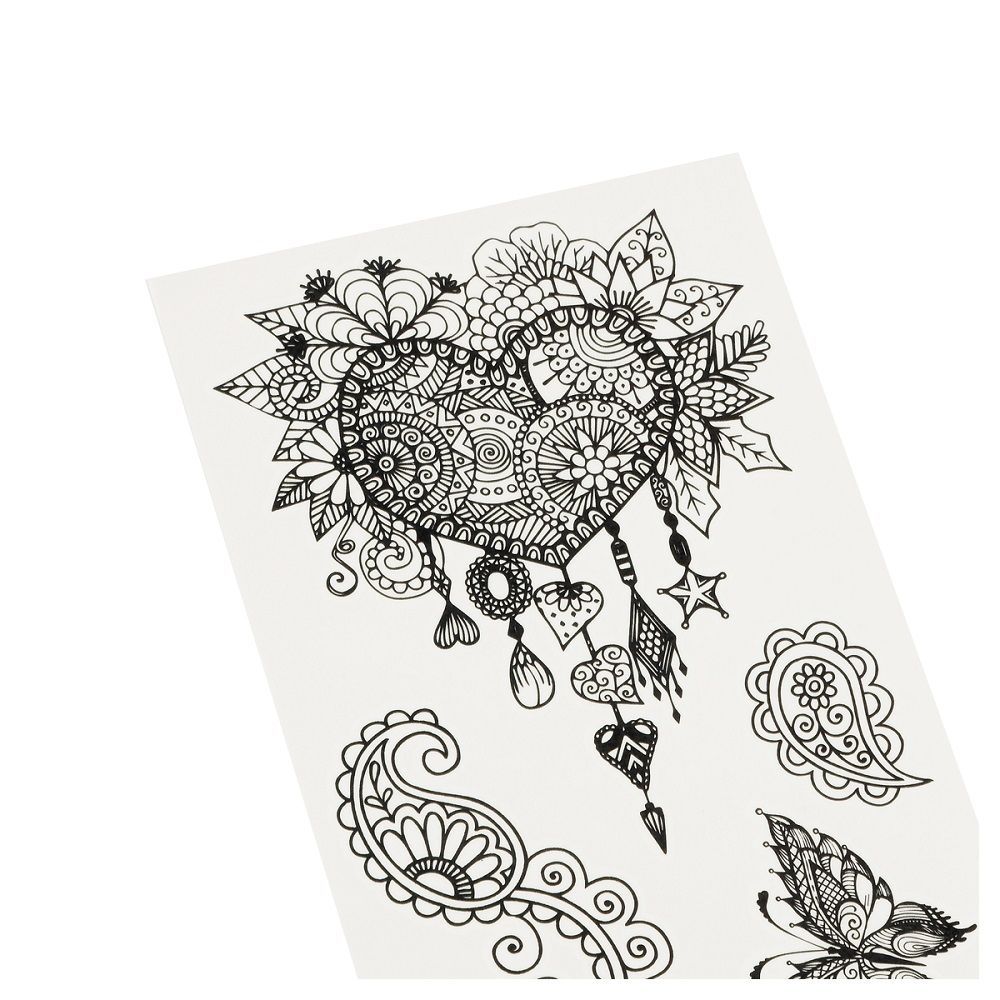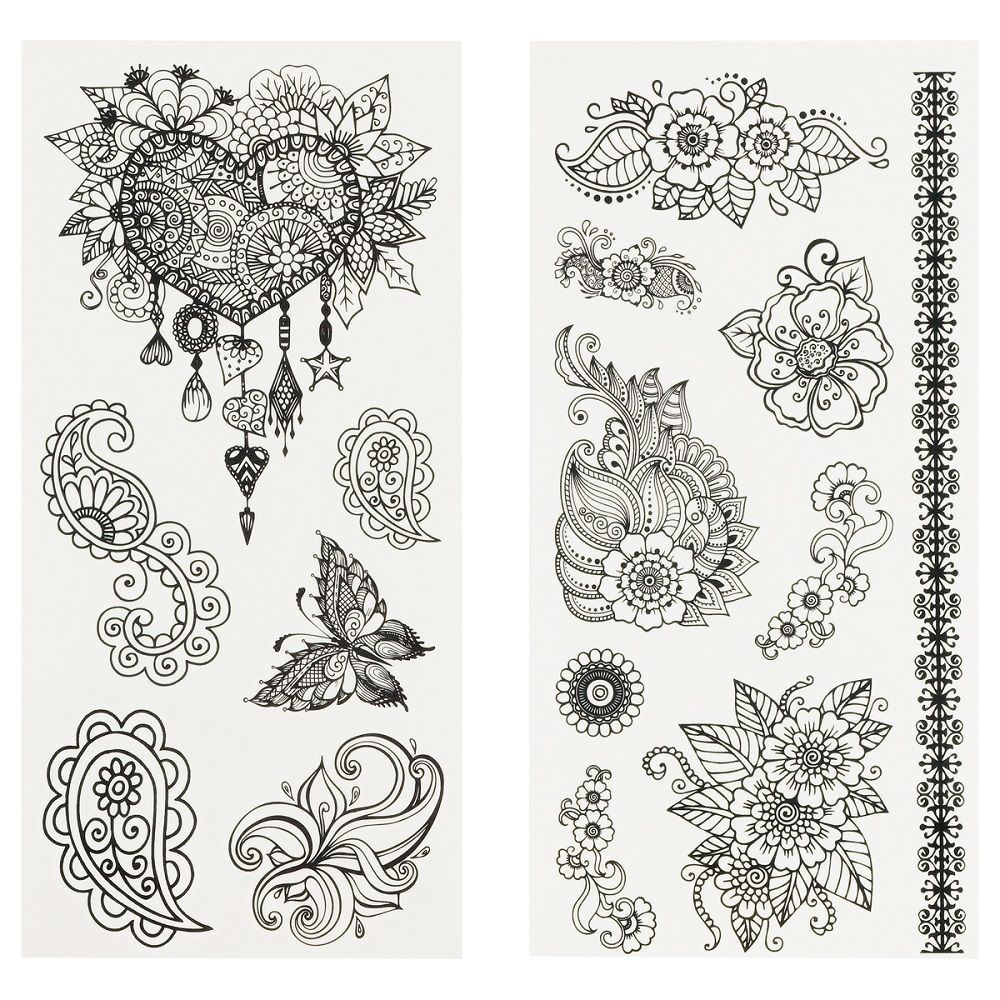 Временные тату легко наносятся, безопасны, не оставляют следов на коже после удаления. На бумажных листах размером 22 x 10 см помещаются 6-9 наклейки. Разнообразие дизайнов позволит выбрать тату на любой вкус и для любого повода. Набор наклеек упакован в пакет с европодвесом.