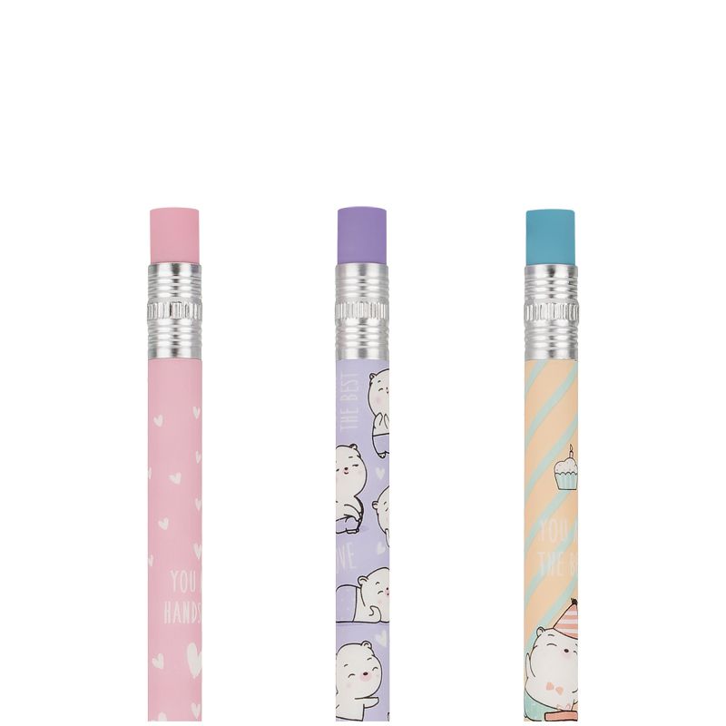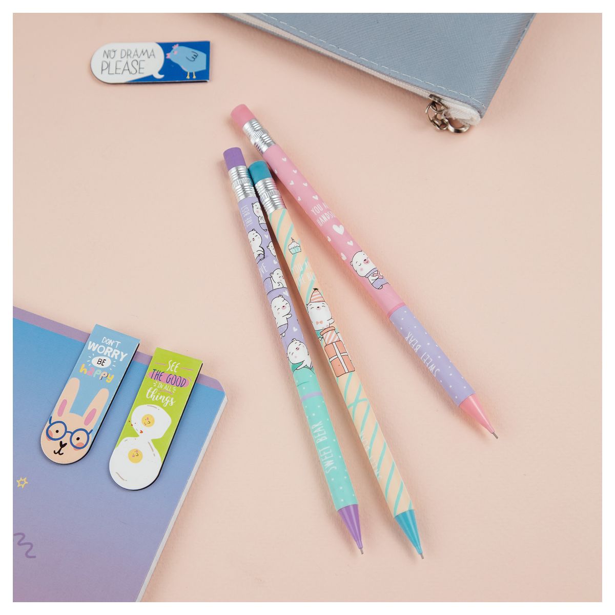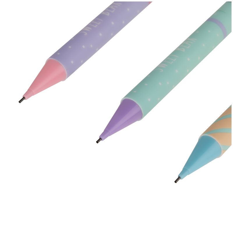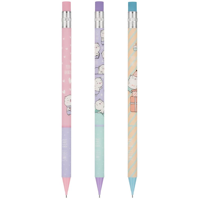 Механический карандаш с печатью на корпусе и ластиком MESHU Sweet bear станут отличными помощниками в школе или офисе. Круглый корпус выполнен в стильных, ярких дизайнах, рисунки нанесены высококачественной термотрансферной печатью. Диаметр грифеля – 0,7 мм, твердость – HB, материал корпуса – пластик. Карандаши упакованы в пластиковую тубу по 24 штуки. Подача грифеля осуществляется с помощью кнопочного механизма.