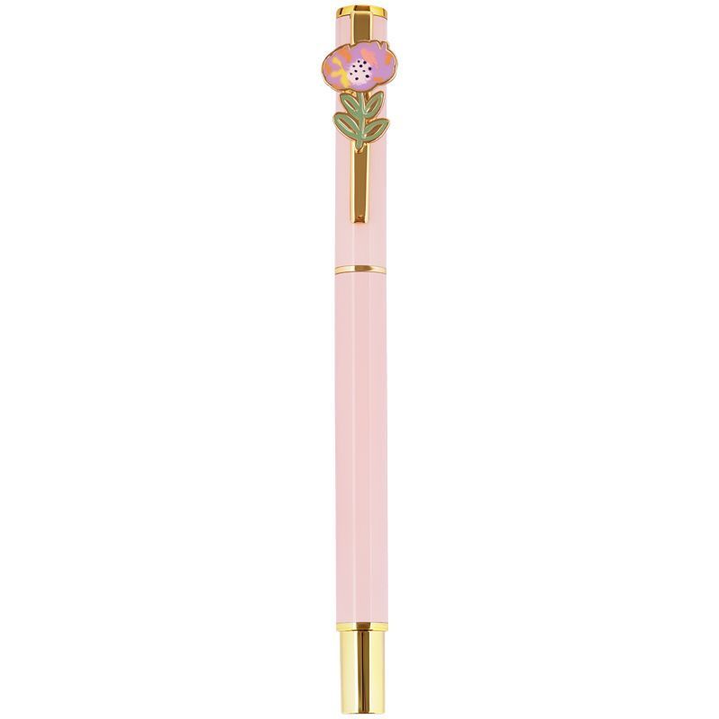 Пастельно-розовый корпус ручки из металла с матовым эффектом украшен нежным цветком на клипе, с помощью которого ручку можно закрепить на одежде или ежедневнике.