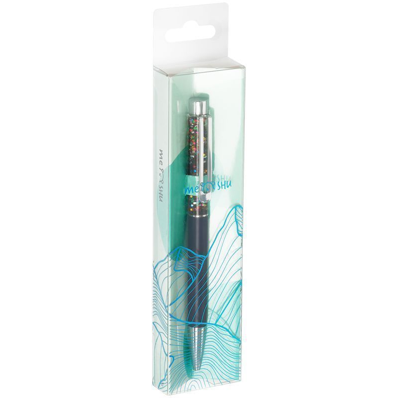 Шариковая ручка MESHU – это привлекательный аксессуар для ярких, смелых и успешных. Диаметр пишущего узла: 1 мм. Ручка подойдёт для мягкого и быстрого письма. Серебряный корпус ручки из металла с темно-синим матовым эффектом украшен вставкой с разноцветным глиттером и дополнен металлическим клипом, с помощью которого ручку можно закрепить на одежде или ежедневнике.