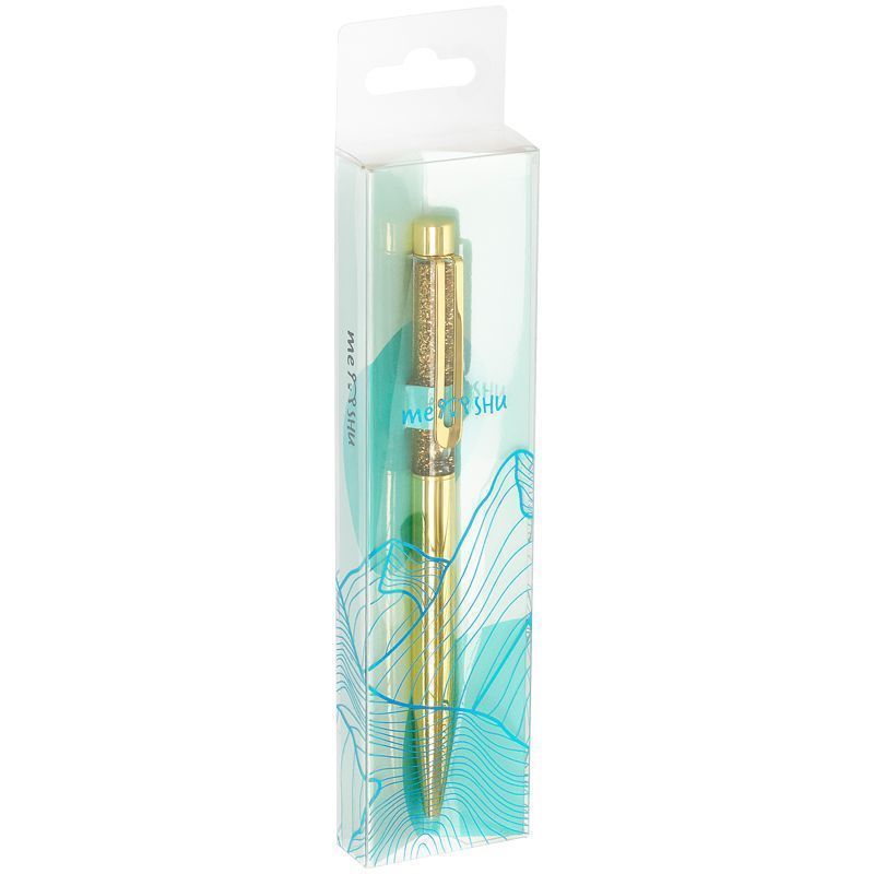 Шариковая ручка MESHU – это привлекательный аксессуар для ярких, смелых и успешных. Диаметр пишущего узла: 1 мм. Ручка подойдёт для мягкого и быстрого письма. Золотой корпус ручки из металла украшен вставкой с глиттером и дополнен металлическим клипом, с помощью которого ручку можно закрепить на одежде или ежедневнике.