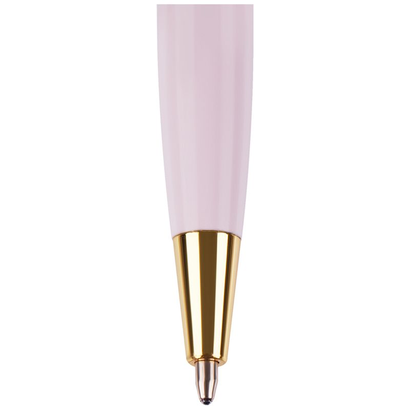 Розовый корпус ручки из металла с матовым эффектом украшен перламутровой жемчужиной и дополнен металлическим клипом, с помощью которого ручку можно закрепить на одежде или ежедневнике.