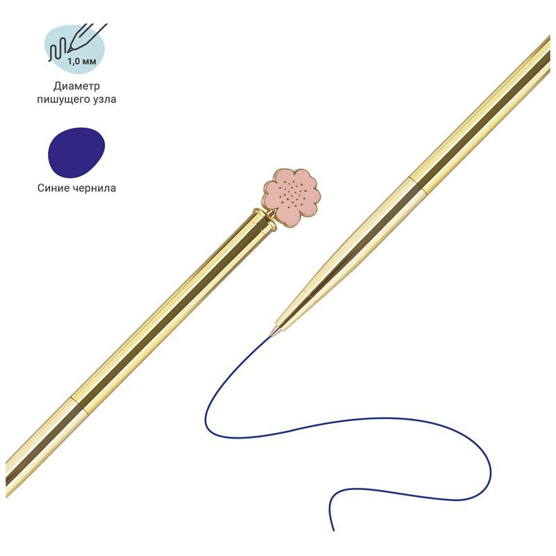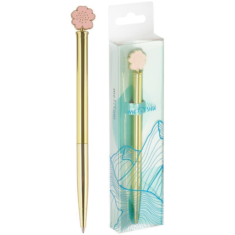 Шариковая ручка MESHU – это привлекательный аксессуар для ярких, смелых и успешных. Золотой корпус ручки из металла украшен розовым цветком в обрамлении, напоминающим нежную вербену.