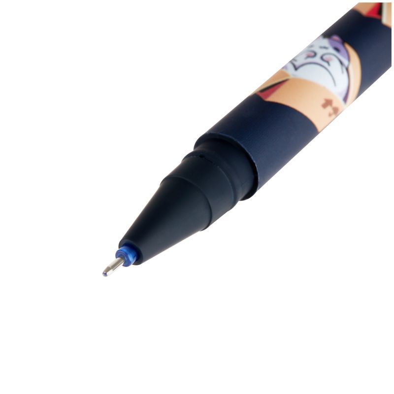 Диаметр игольчатого пишущего узла – 0,5 мм, благодаря чему получается тонкая и аккуратная линия. Длина сменного стержня 129 мм. Гелевые чернила синего цвета не только ярко пишут на бумаге, но и при воздействии температуры становятся невидимыми. Достаточно потереть написанное ластиком на кончике ручки. Обесцвеченные чернила проявляются при низкой температуре. Благодаря колпачку с клипом можно закрепить ручку на одежде или тетради.