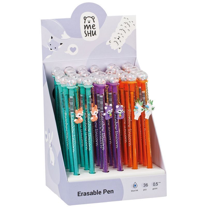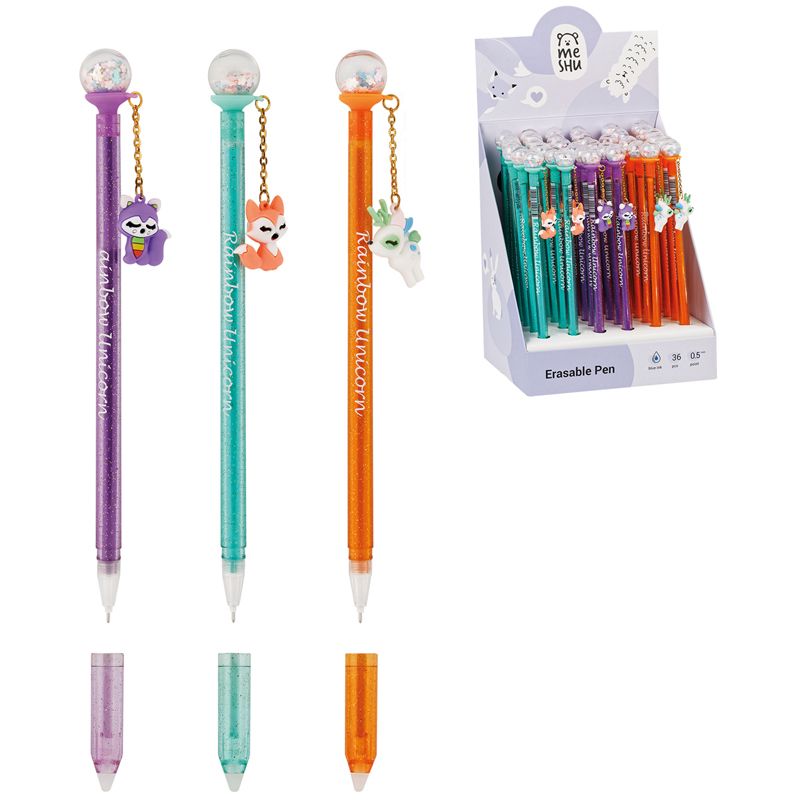 Гелевая стираемая ручка Meshu Glitter Ball станет ярким атрибутом отличного настроения на работе или учёбе. Изделие обладает необычным дизайном: ручка украшена шаром с блестками внутри и мини-брелоком с игрушечным зверьком. Гелевые чернила не только ярко пишут на бумаге, но и при воздействии температуры становятся невидимыми – достаточно потереть написанное ластиком на кончике ручки. Обесцвеченные чернила проявляются при низкой температуре. Диаметр пишущего узла составляет 0,5 мм, благодаря чему ручка прекрасно подойдёт для любого стиля письма. Толщина линии составляет 0,3 мм. Благодаря чернилам синего цвета ручку можно использовать в работе или учёбе на постоянной основе. Чернила сменные, что говорит о долговечности изделия.