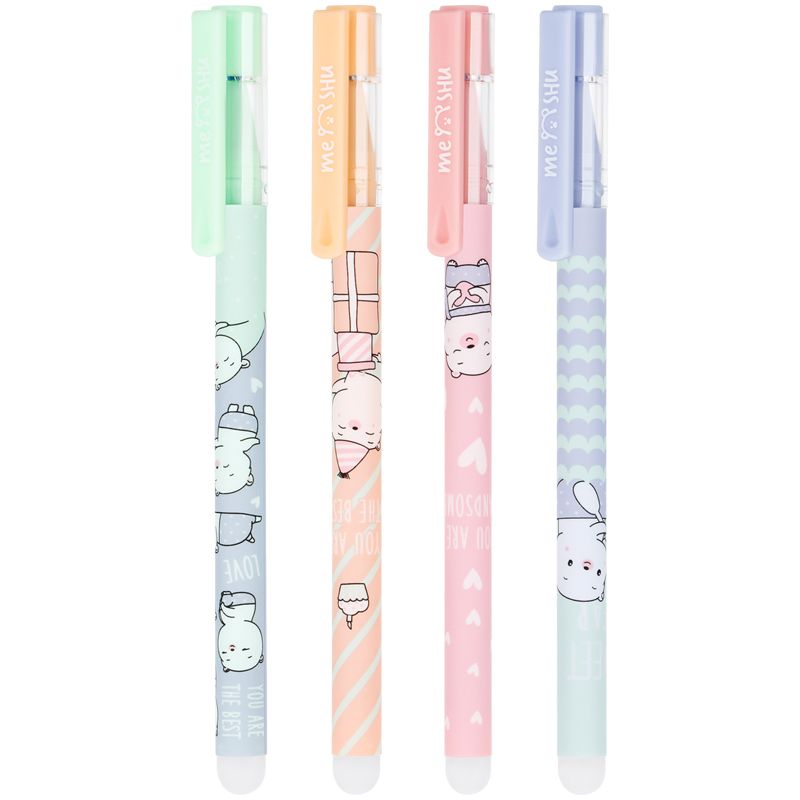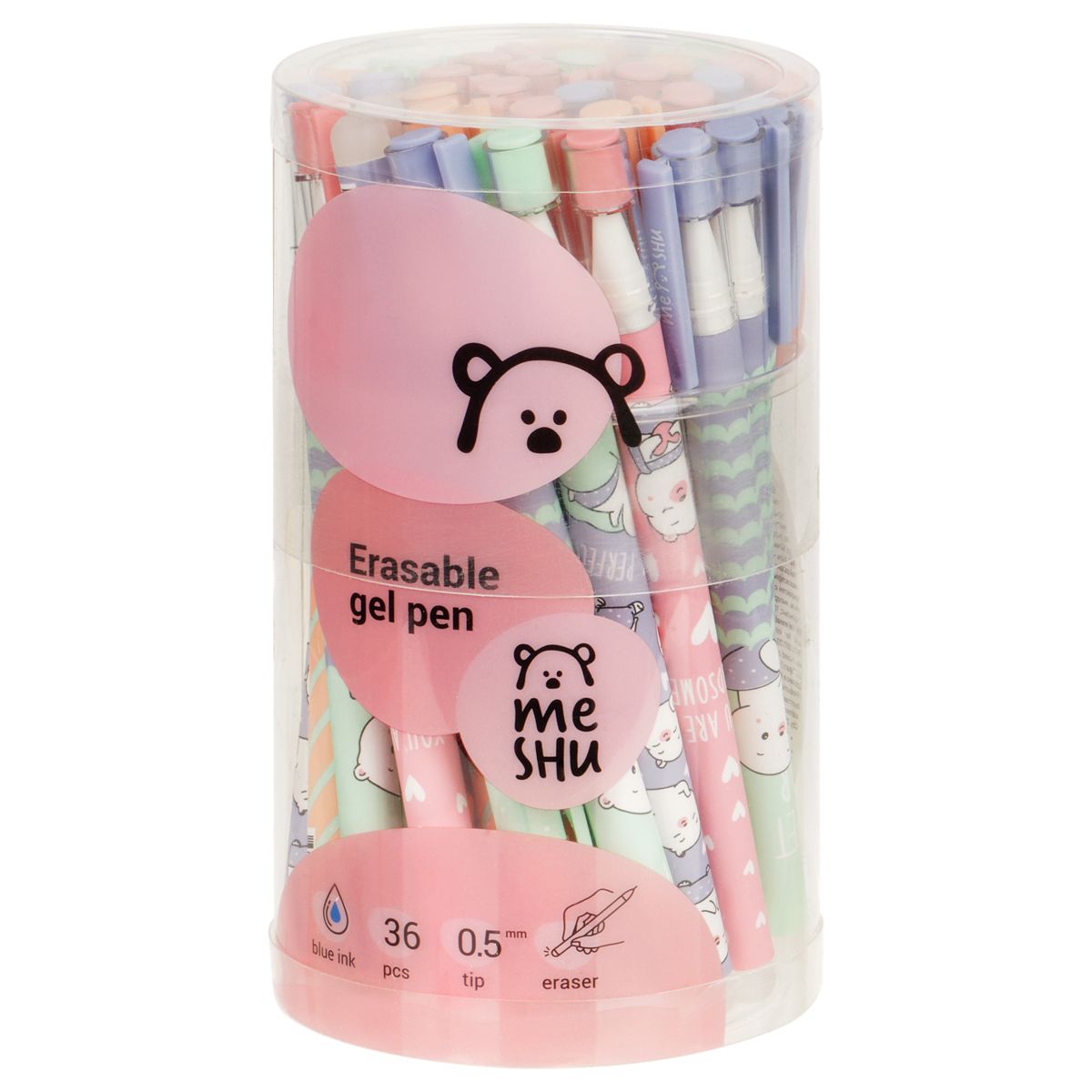 Гелевая ручка MESHU – это яркий дизайн с уникальными стираемыми чернилами внутри. Диаметр игольчатого пишущего узла – 0,5 мм, благодаря чему получается тонкая и аккуратная линия. Длина сменного стержня 129 мм. Гелевые чернила синего цвета не только ярко пишут на бумаге, но и при воздействии температуры становятся невидимыми. Достаточно потереть написанное ластиком на кончике ручки. Обесцвеченные чернила проявляются при низкой температуре. Благодаря колпачку с клипом можно закрепить ручку на одежде или тетради.