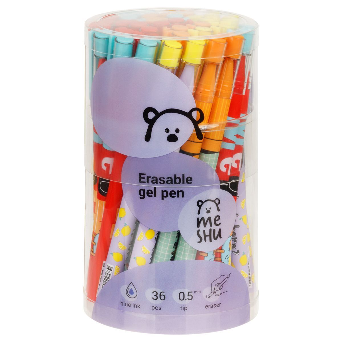 Гелевая ручка MESHU – это яркий дизайн с уникальными стираемыми чернилами внутри. Диаметр игольчатого пишущего узла – 0,5 мм, благодаря чему получается тонкая и аккуратная линия. Длина сменного стержня 129 мм. Гелевые чернила синего цвета не только ярко пишут на бумаге, но и при воздействии температуры становятся невидимыми. Достаточно потереть написанное ластиком на кончике ручки. Обесцвеченные чернила проявляются при низкой температуре. Благодаря колпачку с клипом можно закрепить ручку на одежде или тетради.