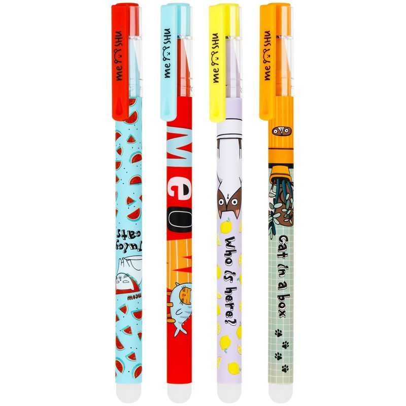 Ручка гелевая стираемая MESHU "Juicy cats" синяя, 0.5 мм, корпус ассорти, софт-тач RE-MS_54001