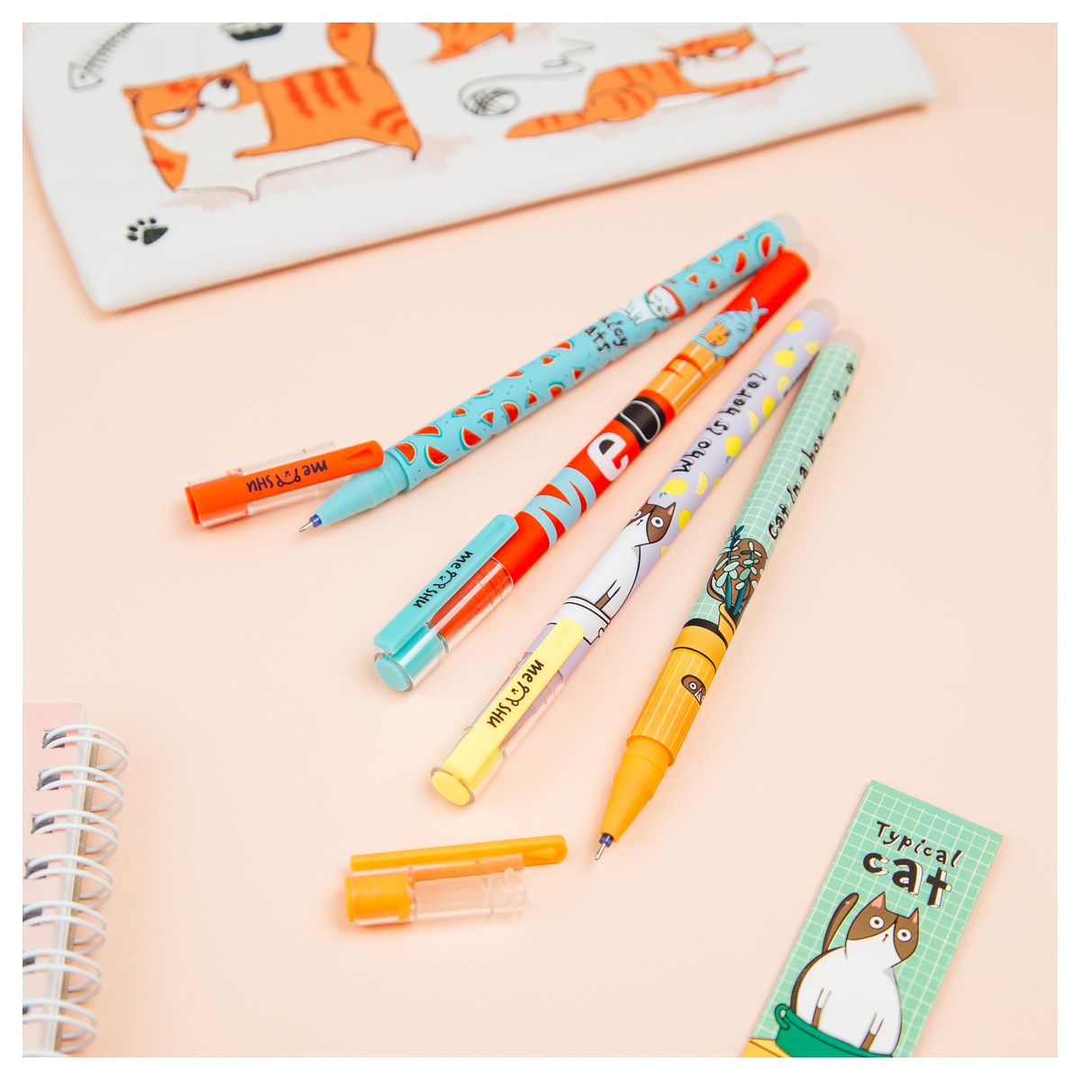 —Ручка гелевая стираемая MESHU "Juicy cats" синяя, 0.5 мм, корпус ассорти, софт-тач RE-MS_54001