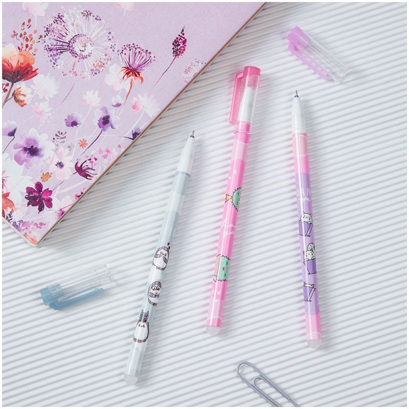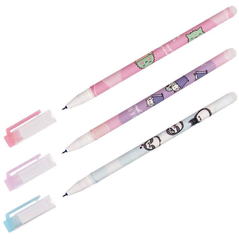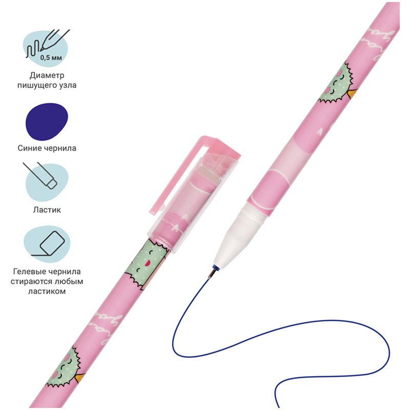 Милый корпус с дизайнами представлен в трёх цветах. Гелевые чернила не только ярко пишут на бумаге, но и при воздействии температуры становятся невидимыми – достаточно потереть написанное ластиком на кончике ручки. Обесцвеченные чернила проявляются при низкой температуре. Колпачок с клипом позволяет закрепить ручку на одежде или тетради.
