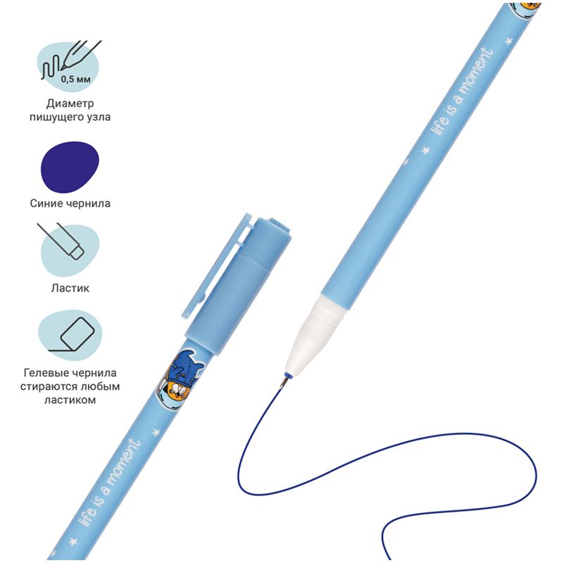 Милый корпус с дизайнами представлен в четырёх цветах. Гелевые чернила не только ярко пишут на бумаге, но и при воздействии температуры становятся невидимыми – достаточно потереть написанное ластиком на кончике ручки. Обесцвеченные чернила проявляются при низкой температуре. Колпачок с клипом позволяет закрепить ручку на одежде или тетради.