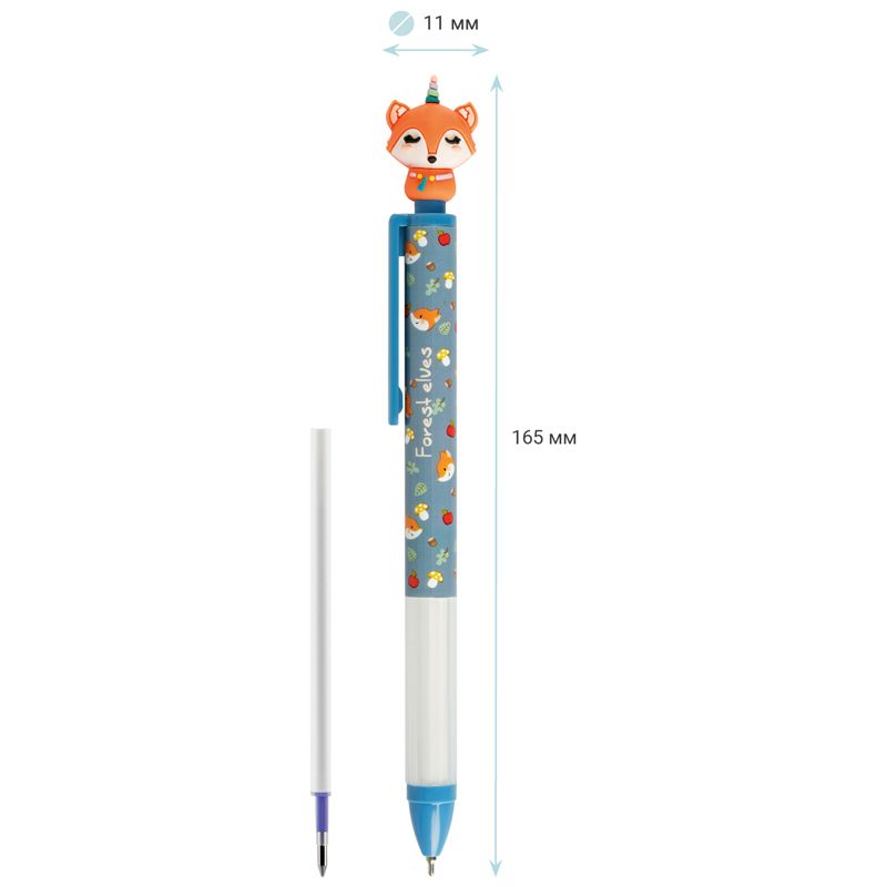 Шариковая автоматическая ручка MESHU Fairy Heroes станет ярким атрибутом отличного настроения на работе или учёбе. Диаметр пишущего узла – 0,5 мм. Благодаря этому ручка прекрасно подойдёт для любого стиля письма. Толщина линии письма – 0, 3 мм, а длина письма может достигать 260 метров. Изделие обладает необычным дизайном: ручка с рисунком на корпусе украшена милой мини-игрушкой в сказочной тематике. Благодаря чернилам синего цвета на масляной основе ручку можно ежедневно использовать в работе или учёбе. Предусмотрена возможность замены стержня.