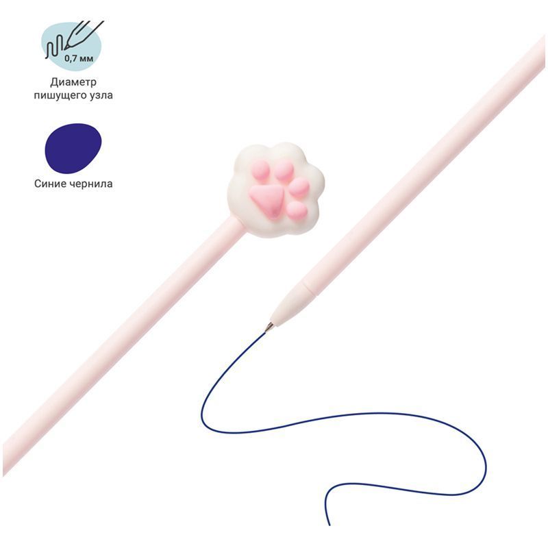 Изделие обладает необычным дизайном: колпачок ручки украшен кошачьей лапкой. Диаметр пишущего узла составляет 0,7 мм, благодаря чему ручка прекрасно подойдёт для любого стиля письма. Толщина линии письма составляет 0,5 мм. Ручка не обладает автоматическим механизмом подачи стержня, но имеет надёжный пластмассовый колпачок. Это гарантирует надёжность и безопасность изделия. Благодаря чернилам синего цвета ручку можно использовать в работе или учёбе на постоянной основе. Чернила сменные, что говорит о долговечности изделия.