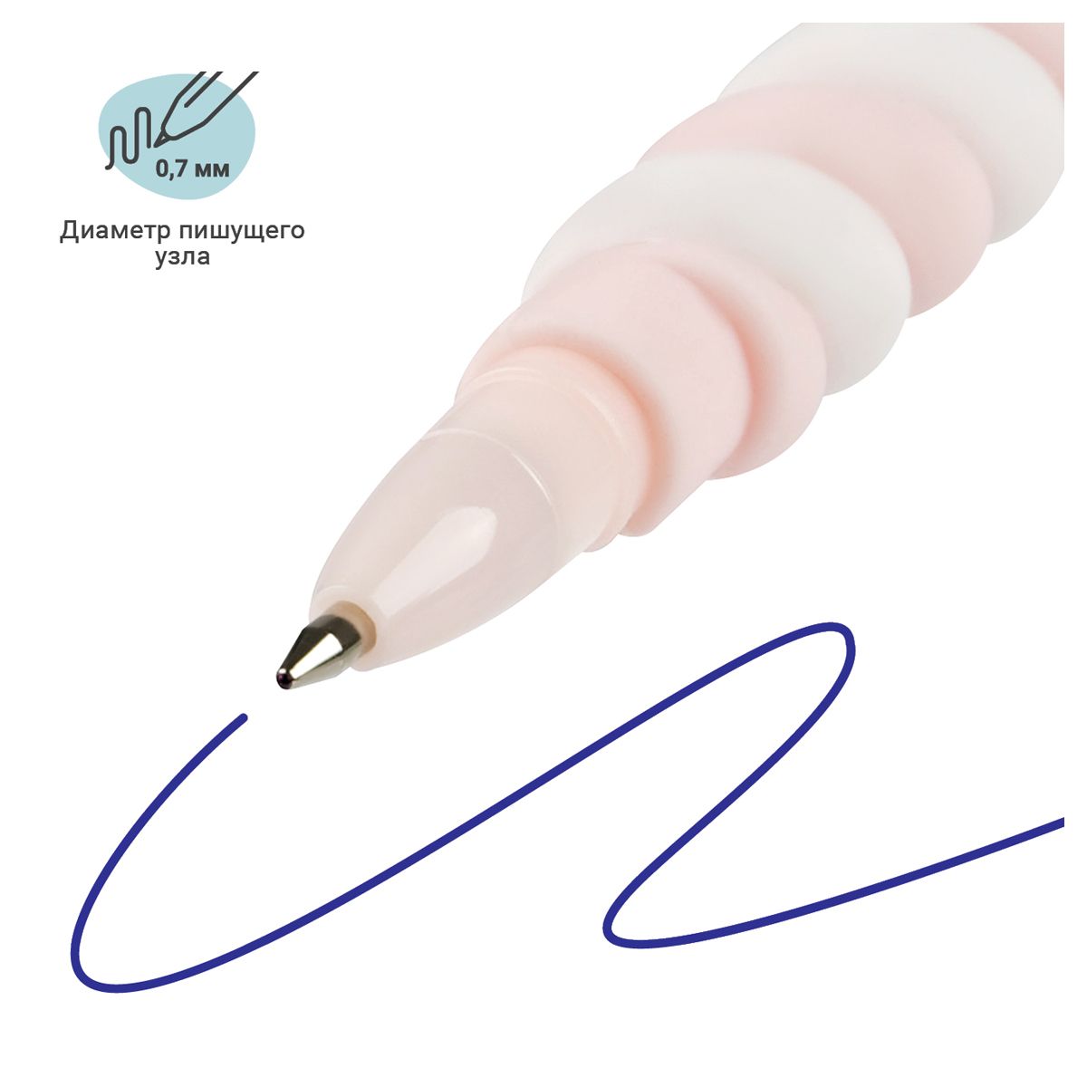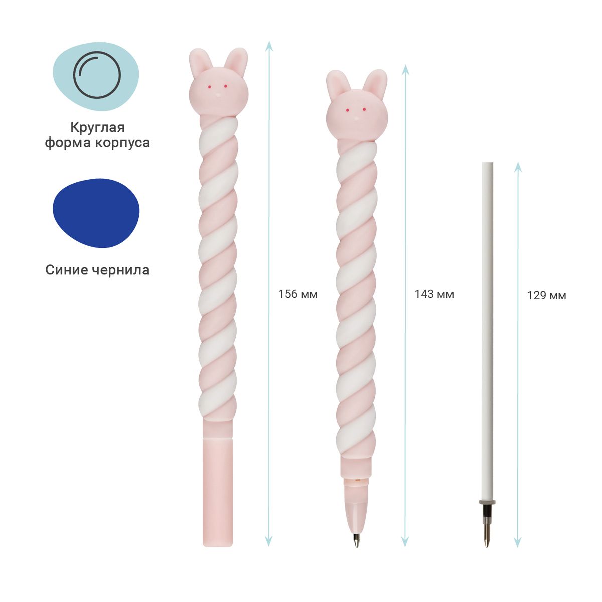 Диаметр пишущего узла – 0,7 мм. Ручка прекрасно подойдёт для мягкого и быстрого письма. Толщина линии письма – 0, 5 мм, а длина письма может достигать от 450 до 500 метров. Ручка обладает необычным дизайном: корпус выполнен в форме милой сладости. У ручки есть пластиковый колпачок, который гарантирует, что изделие не повредится в сумке и не оставит следов на посторонних предметах. Благодаря чернилам синего цвета ручку можно ежедневно использовать в работе или учёбе. Изделие предусматривает возможность замены стержня длиной 115 мм. Ручки упакованы в картонную коробку-дисплей.