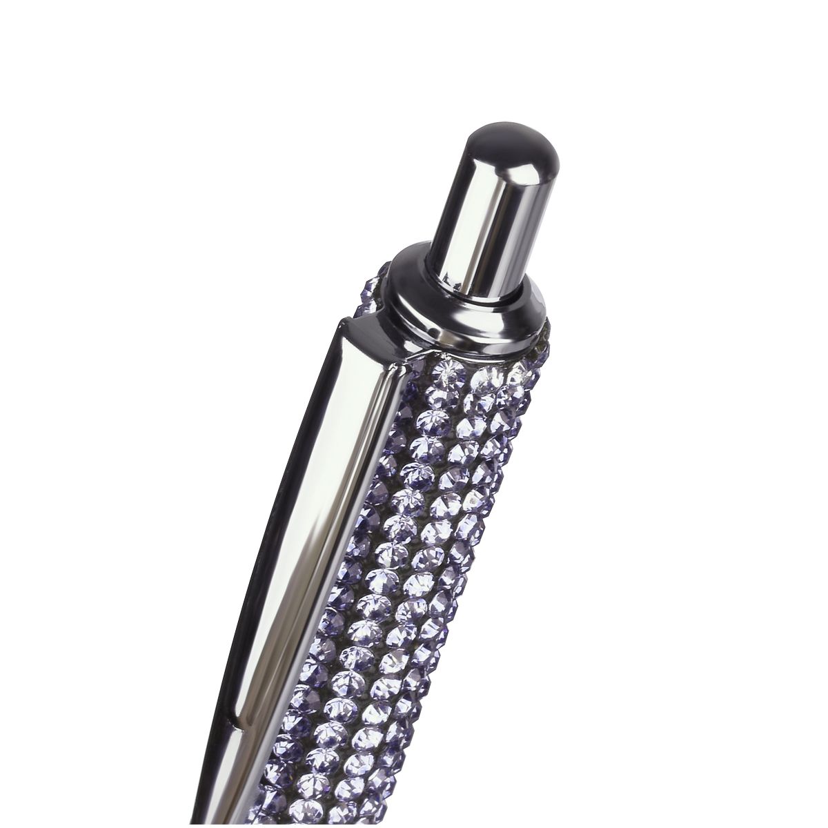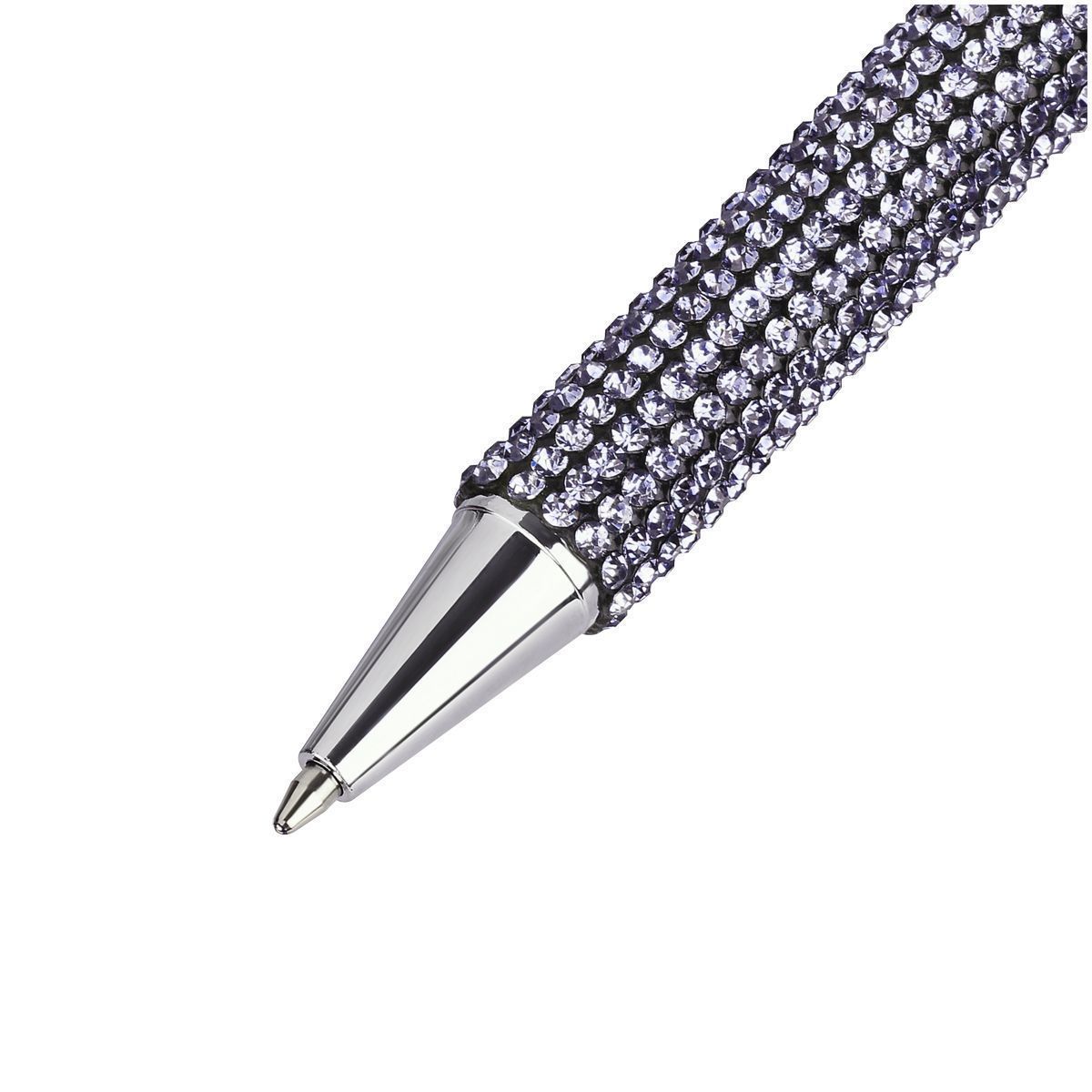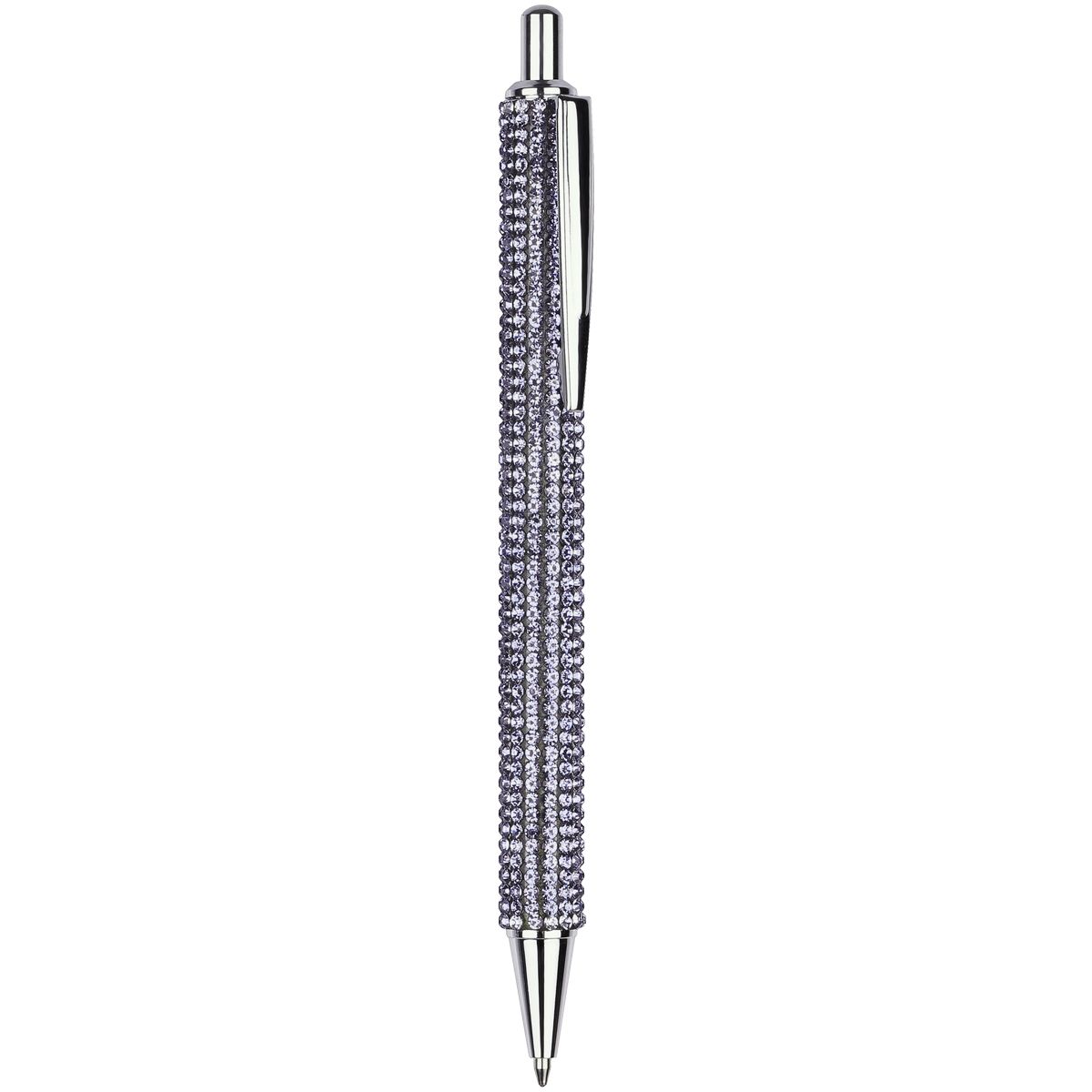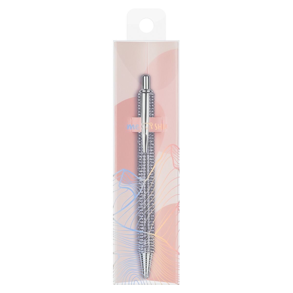 Серебристый корпус из металла украшен стразами. Благодаря необычному декору и яркой индивидуальной упаковке с голографическими элементами ручка — готовое решение для подарка.