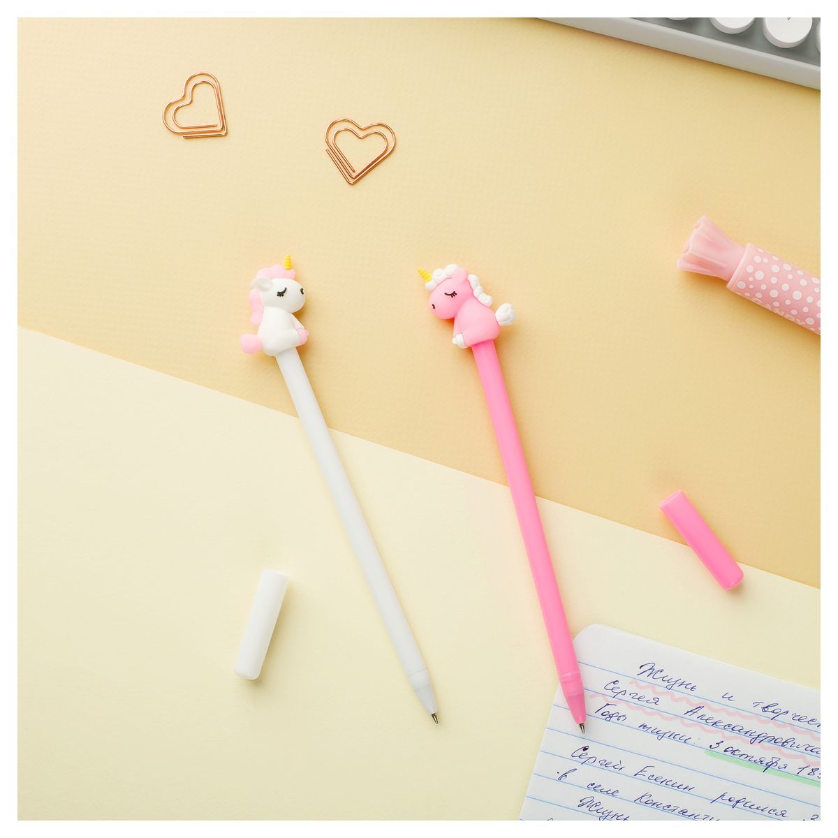 Корпус украшен милым топпером. Диаметр пишущего узла составляет 0,7 мм, за счёт чего ручка подходит для любого стиля письма. Благодаря чернилам синего цвета её можно использовать в повседневной жизни на постоянной основе. Толщина линии письма составляет 0,5 мм. Стержень сменный, что говорит о долговечности изделия.