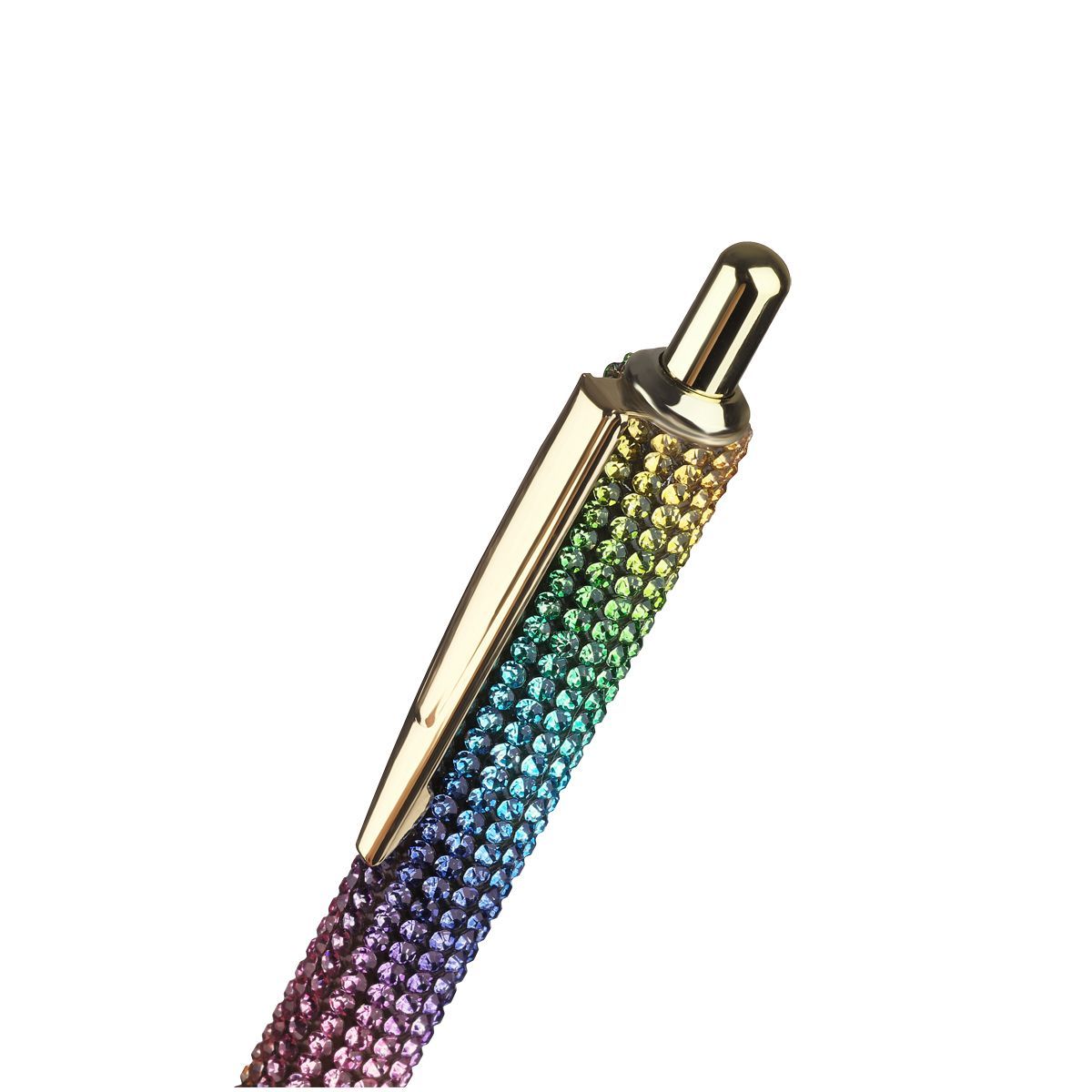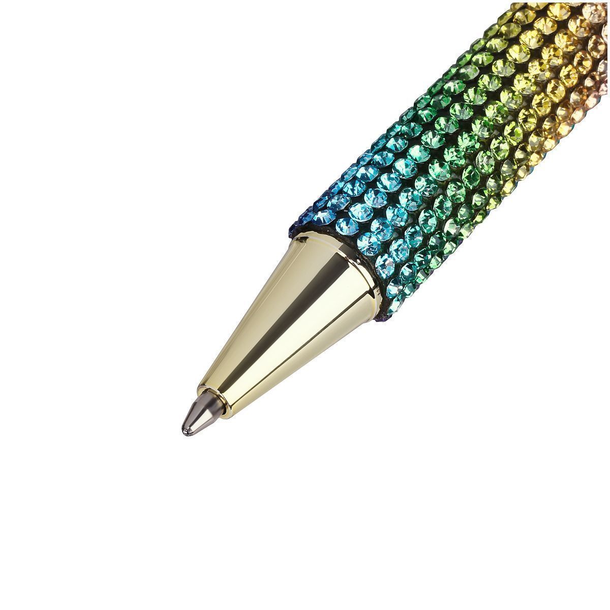 Корпус ручки из металла под золото украшен вставкой со стразами и дополнен металлическим клипом, с помощью которого ручку можно закрепить на одежде или ежедневнике.