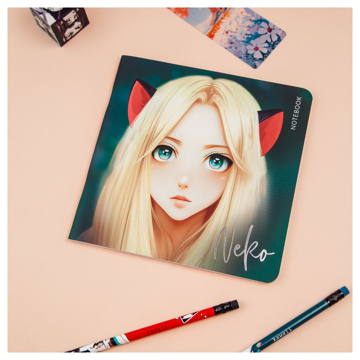 Записная книжка MESHU "Neko" формата 170 х 170 мм на скрепке со скругленными уголками. Удобно помещается в рюкзак или сумку и всегда будет под рукой. Мягкая обложка изготовлена из картона с soft-touch ламинацией и тиснением фольгой. Внутренний блок - 40 нелинованных листов из бумаги плотностью 80г/м2 также отлично подойдет для набросков.