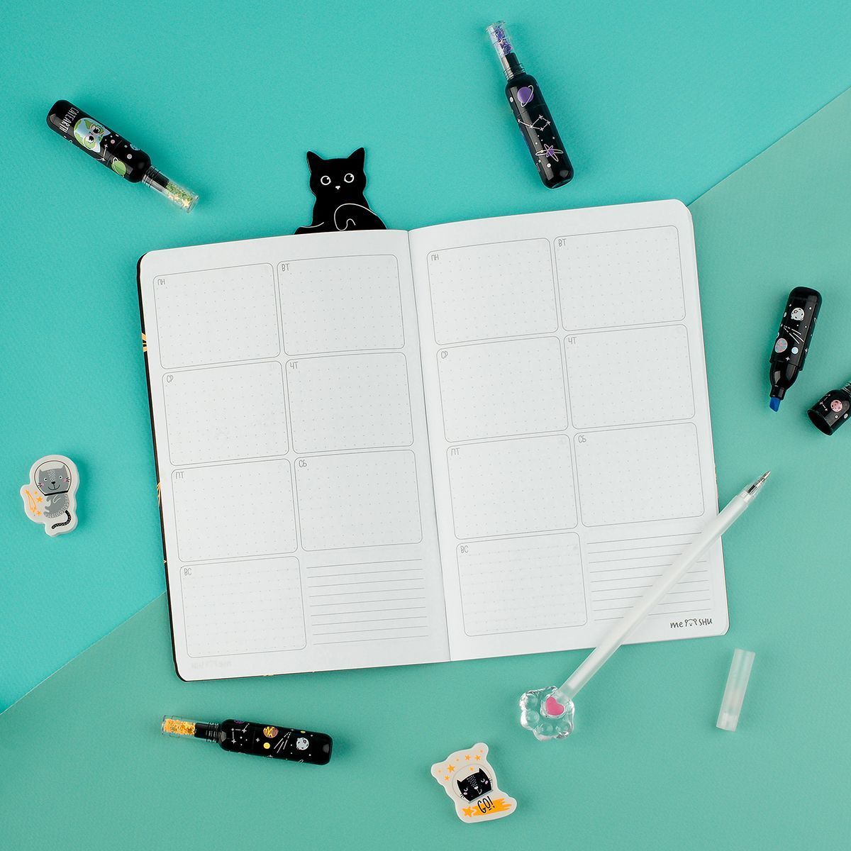 Еженедельный недатированный планер на скобе MESHU "Black cat" помогает эффективно распоряжаться временем.