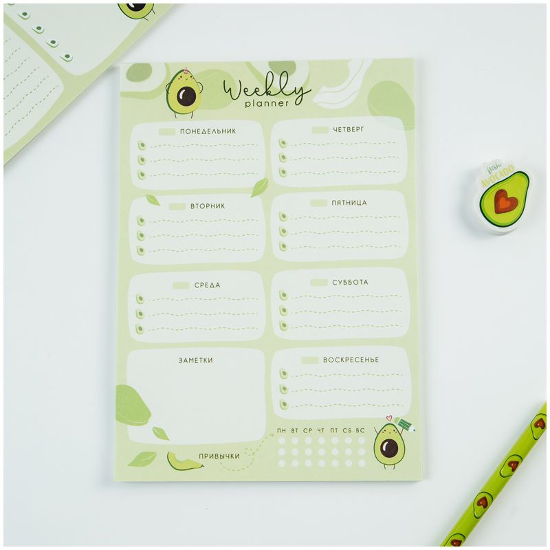 Планер на неделю на склейке MESHU Avocado поможет стильно и удобно фиксировать важные дела и задачи.