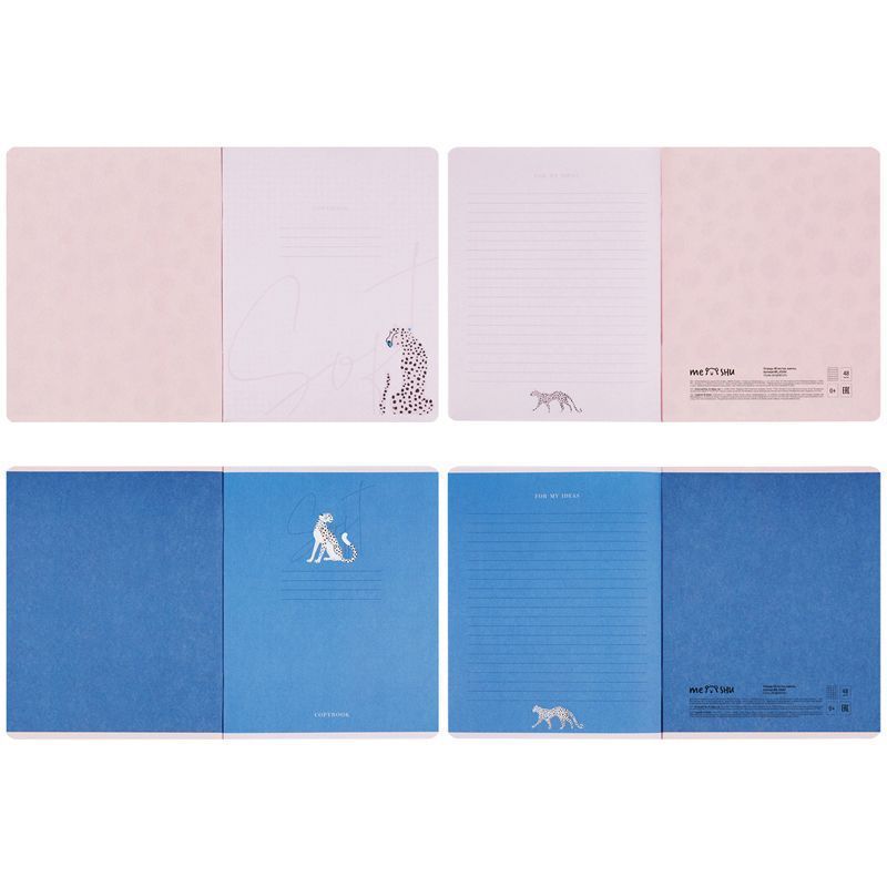 Тетрадь MESHU серии Bright&Soft формата А5 (165 x 205 мм) на гребне состоит из 48 листов. Внутренний блок – офсетная бумага плотностью 65 г/м², белизна – 100%, линовка – клетка с полями. Обложка тетради изготовлена из импортного целлюлозного картона и выделяется стильным дизайном и цветной запечаткой форзаца. Отделка обложки – soft-touch-ламинация, тиснение фольгой. Современный дизайн обложки понравится ценителям трендов. Дополнительные листы, на которых удобно записывать важные заметки, являются логичным продолжением общего дизайна тетради.