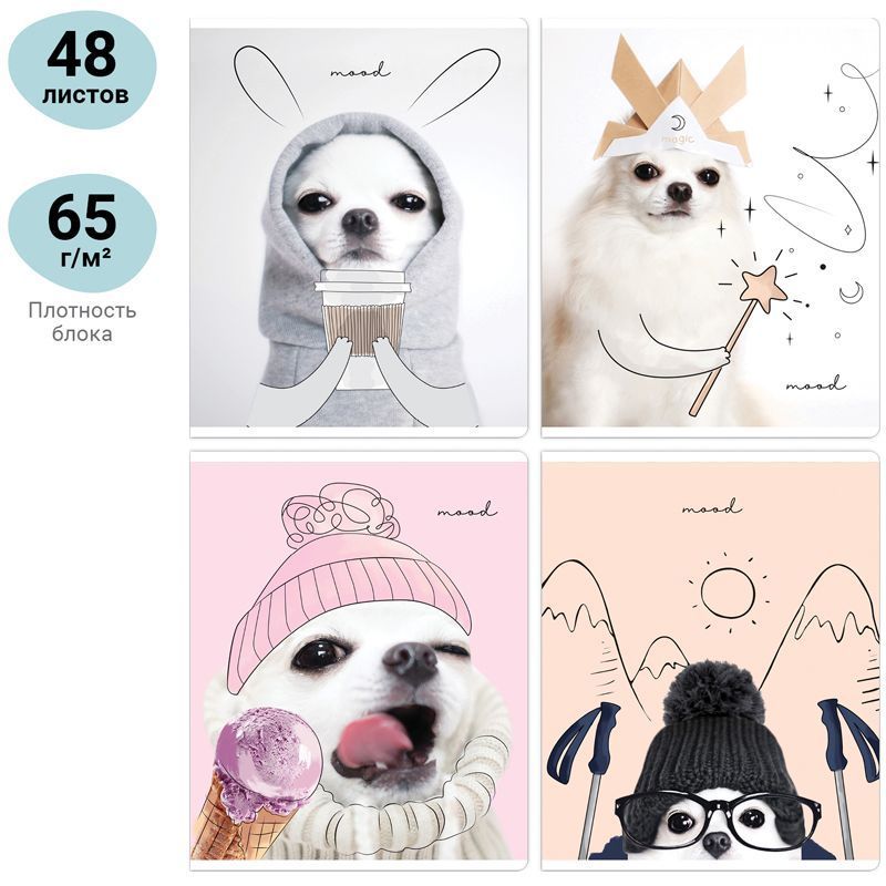 Необычное и яркое исполнение тетрадей MESHU серии Puppy − отличительная черта бренда, а подкладные листы, на которых удобно записывать важные заметки, являются логичным продолжением общего дизайна тетради. Внутренний блок изделия состоит из 48 листов в клетку с полями формата A5 на офсетной бумаге плотностью 65 г/м², белизна которой составляет 100%. Стильная обложка тетради с цветной запечаткой форзаца выполнена из импортного целлюлозного картона. Отделка обложки - глянцевая ламинация, выборочный УФ-лак.