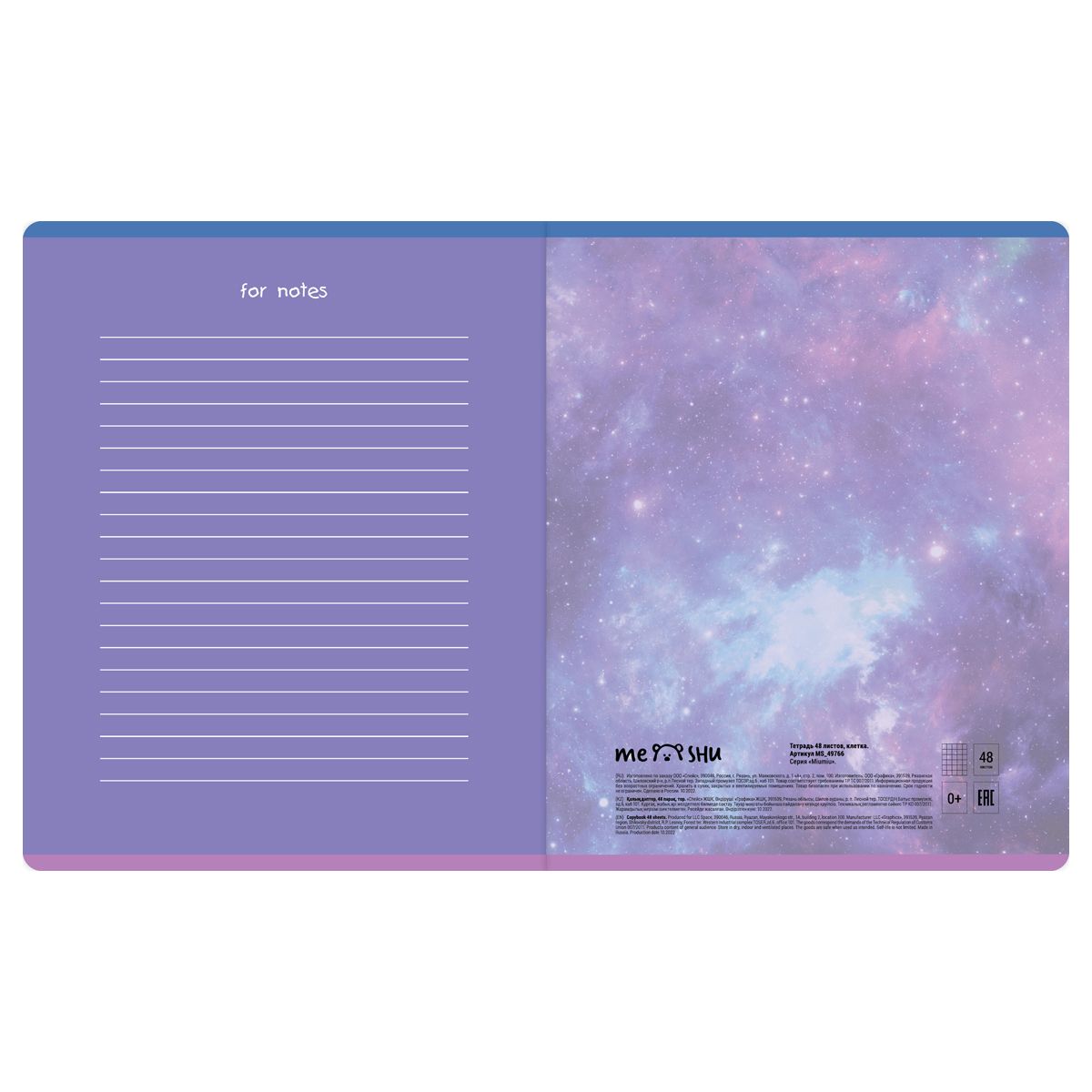 Необычное и яркое исполнение тетрадей MESHU Miumiu − отличительная черта бренда, а дополнительные листы, на которых удобно записывать важные заметки, являются логичным продолжением общего дизайна тетради. Внутренний блок изделия состоит из 48 листов в клетку с полями формата A5 на офсетной бумаге плотностью 60 г/м², белизна которой составляет 100%. Обложка тетради из импортного целлюлозного картона выделяется ярким дизайном и цветной запечаткой форзаца. Отделка обложки – матовая ламинация, тиснение фольгой.
