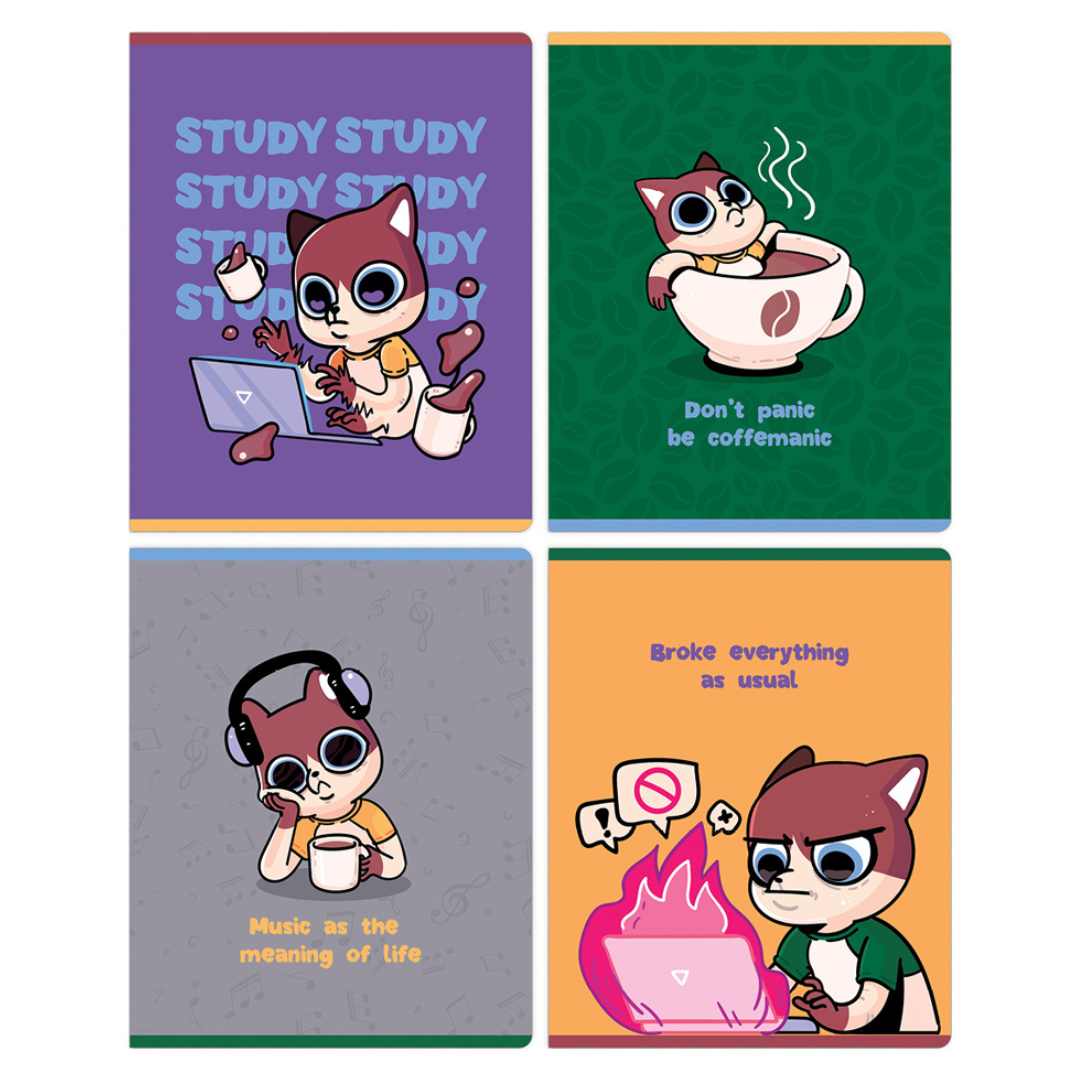 • Обложка тетради из импортного целлюлозного картона выделяется ярким дизайном и цветной запечаткой форзаца.