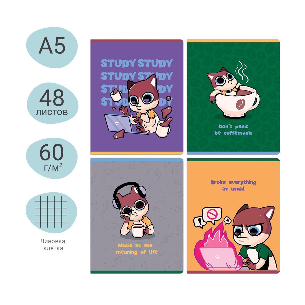 —Тетрадь 48л. A5 клетка MESHU "Mood" матовая ламинация RE-MS_49790