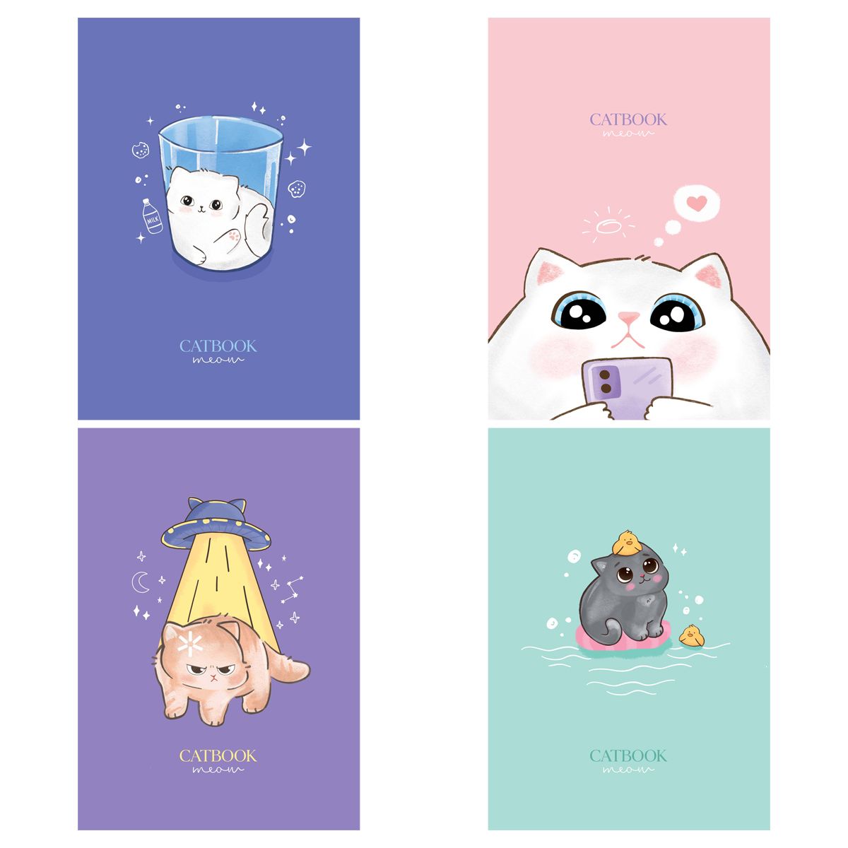 Тетрадь Meshu серии Cat Book в клетку. Формат А5 (165*205 мм). Вид крепления – гребень. Внутренний блок – это 80 листов, офсетная бумага плотностью 60-65 г/м². Обложка выполнена из мелованного картона. Особенностью этой тетради является - двойная обложка, одна тетрадь из 80-ти листов, легко превращается в две тетради по 40 листов,которые можно использовать под разные предметы.