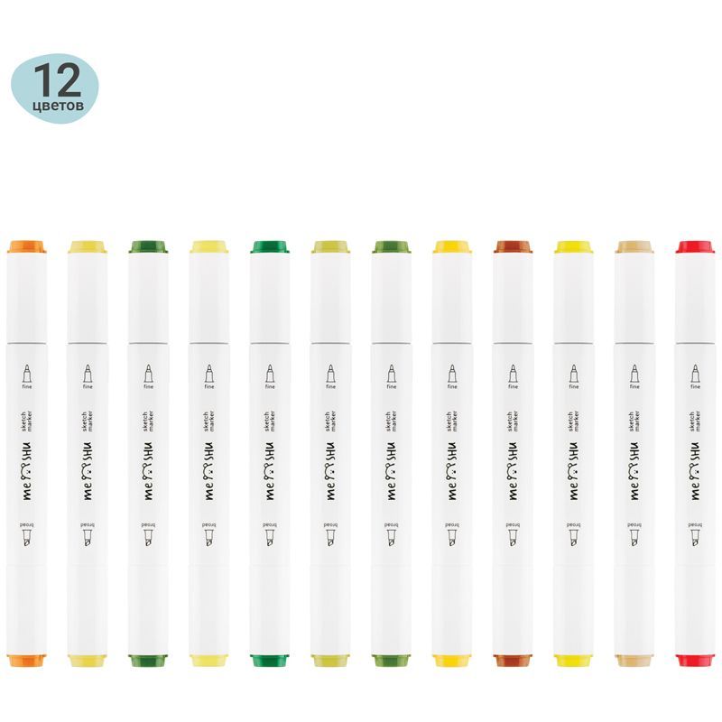 —Набор двусторонних маркеров для скетчинга MESHU 12цв., осенние цвета, корпус трехгранный, пулевид./клиновид.наконечники, ПВХ-бокс RE-MS_38255