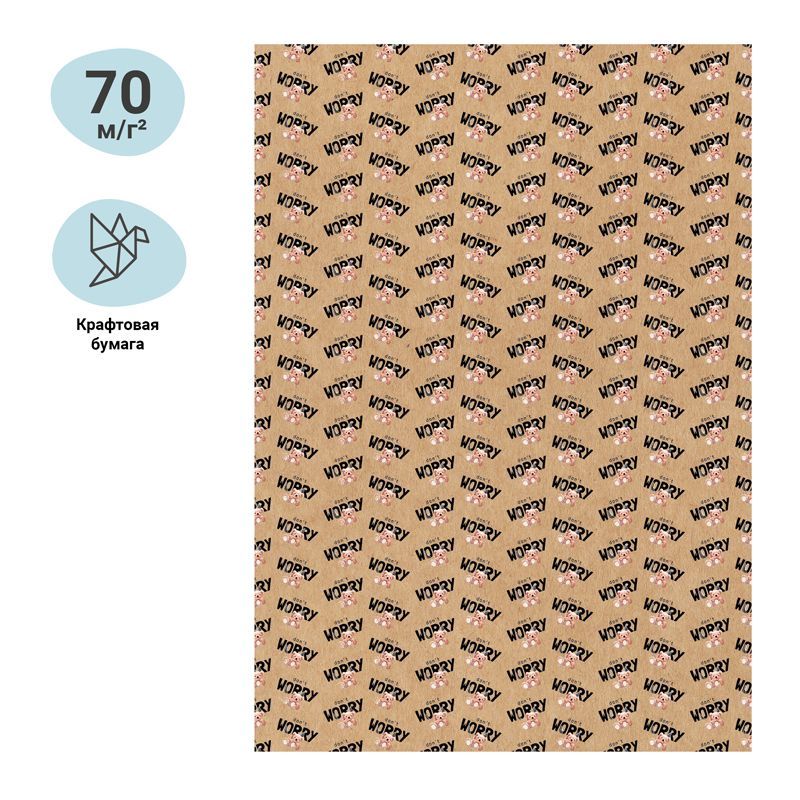—Упаковочная бумага крафт MESHU "Don't worry" 1л. 70 x 100 см 70 г/м2 RE-MS_46376