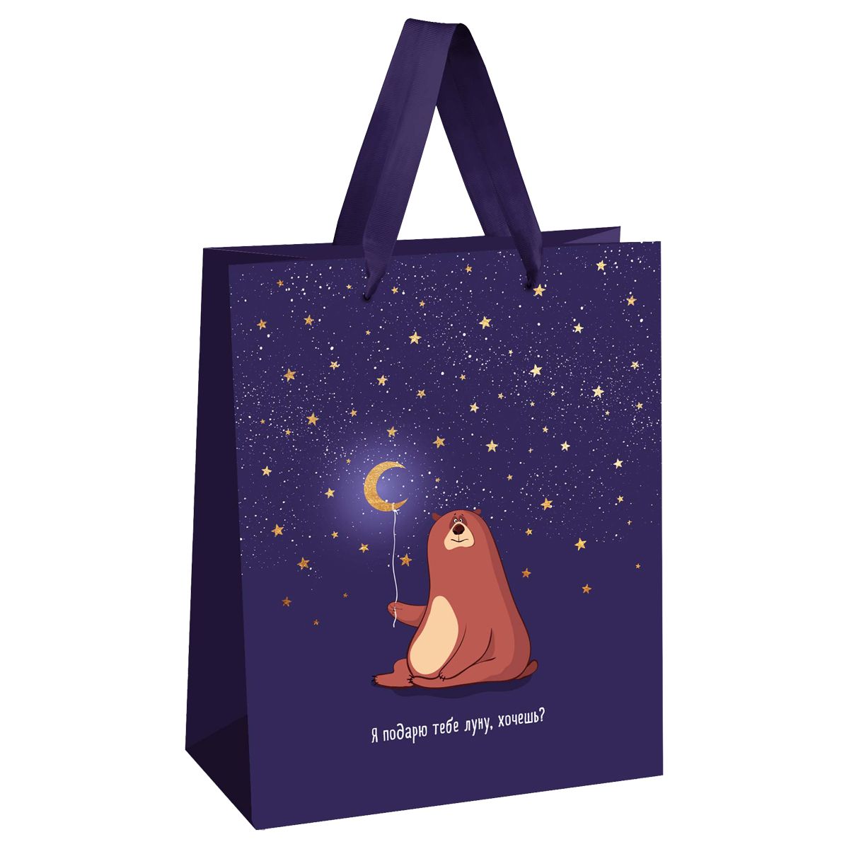 Размер подарочного пакета – 33 x 42 x 12 см. Изготовлен из плотного мелованного картона с матовой ламинацией, отделкой фольгой и выборочным лакированием.
