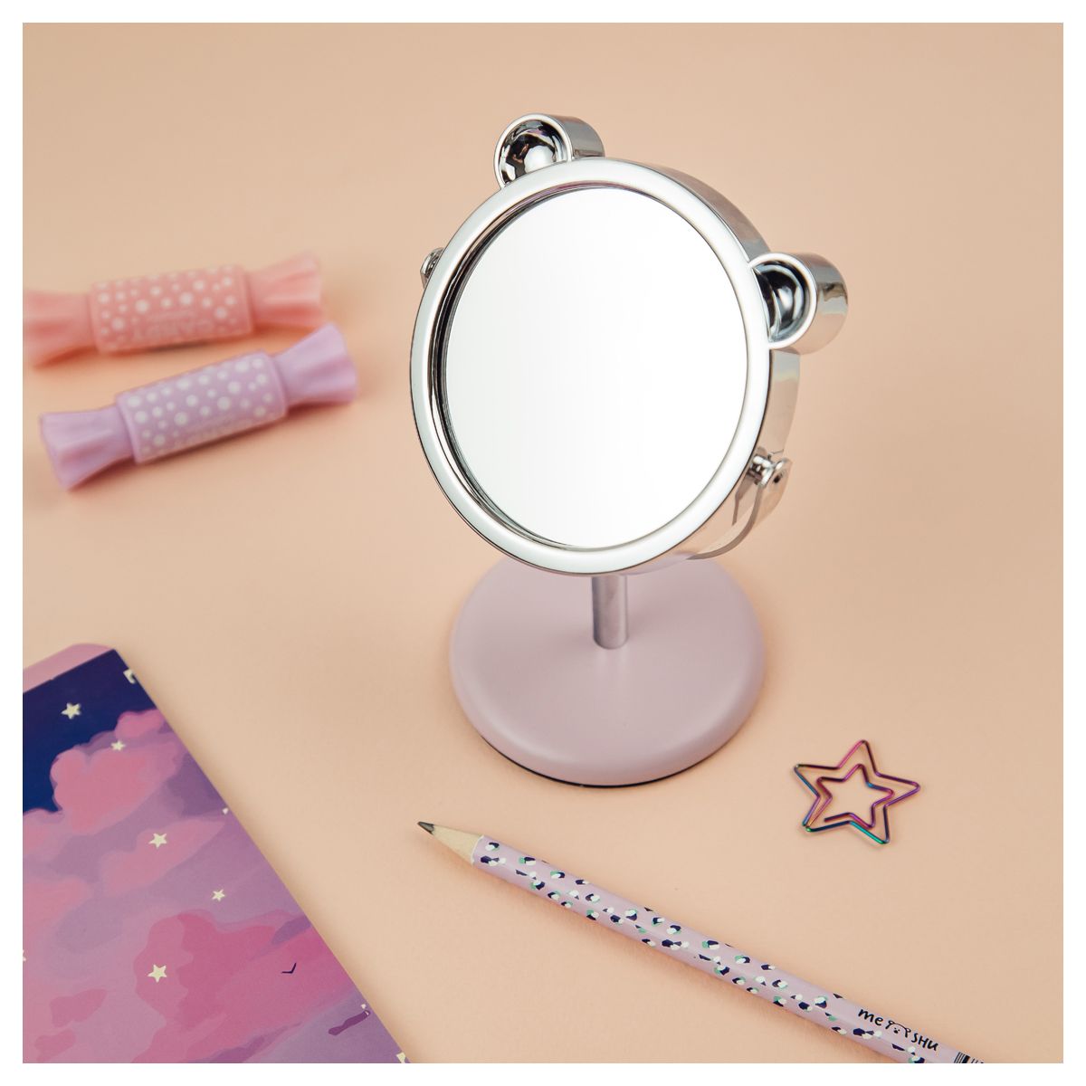 Компактное зеркало MESHU – стильный, красивый и полезный аксессуар, необходимый любой девушке. Милый дизайн непременно понравится обладательнице. Изделие упаковано в пакет и индивидуальный картонный бокс.