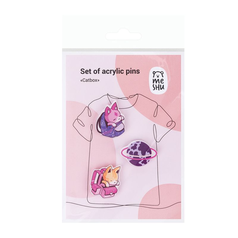 Набор акриловых значков MESHU Catbox – оригинальный и модный аксессуар, который преобразит любую вещь.