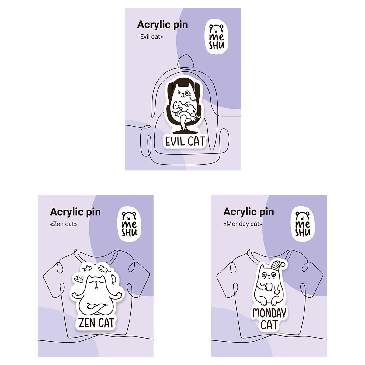 Набор акриловых значков MESHU "Such different cats" поможет украсить худи, джинсовку, косуху или рюкзак, придав вещи индивидуальности.
