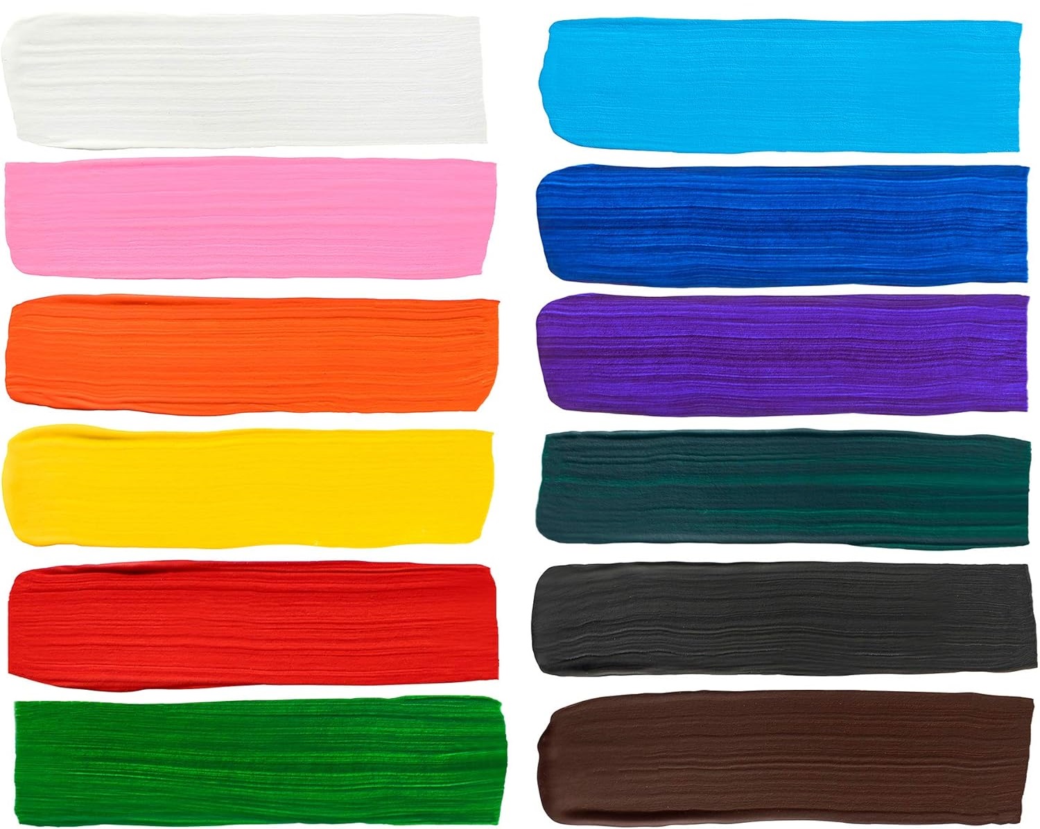 Набор упакован в картонную коробку и содержит 12 баночек матовых акриловых красок, упакованных в картонную коробку.