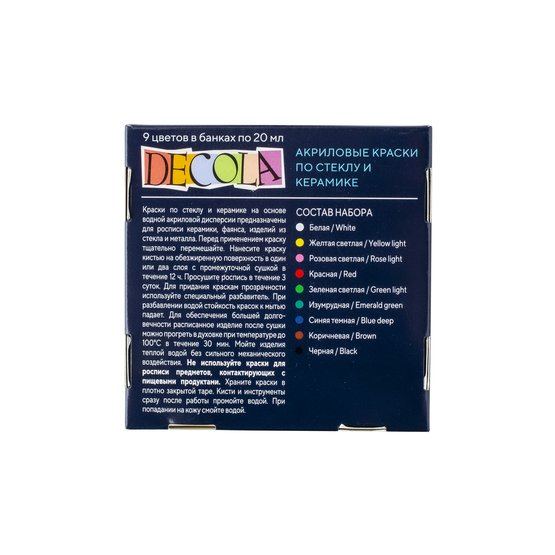 Набор акриловых красок по стеклу/керамике DECOLA 9 шт х 20 мл, картон NP-4041113