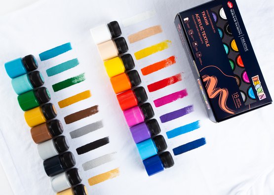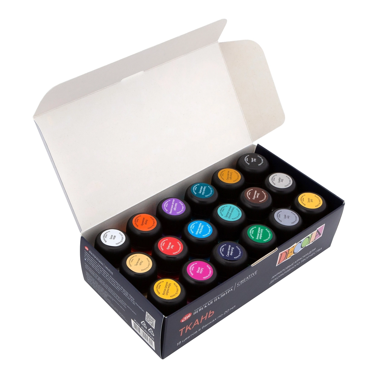 <b>Набор акриловых красок по ткани DECOLA содержит 18 банок по 20 мл</b><br>