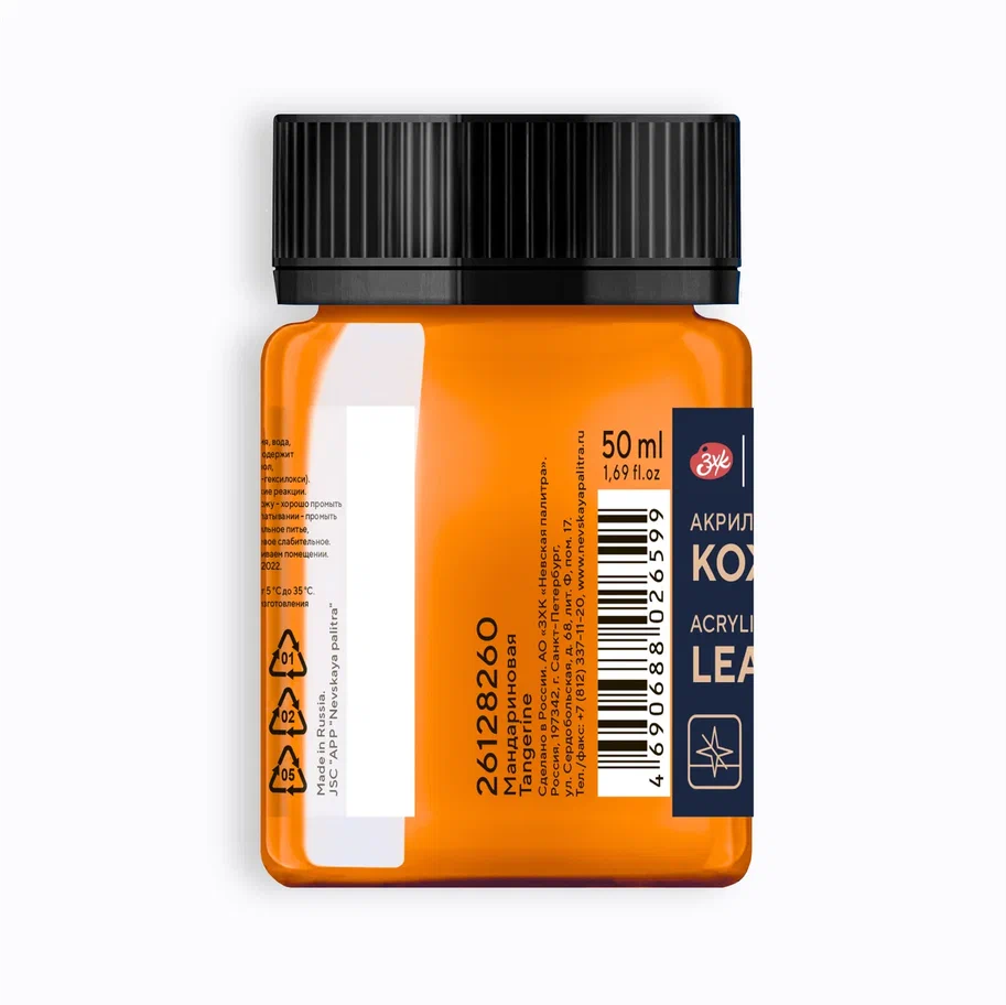 —Краска акриловая по коже DECOLA банка 50 мл, 260 Мандариновая NP-26128260