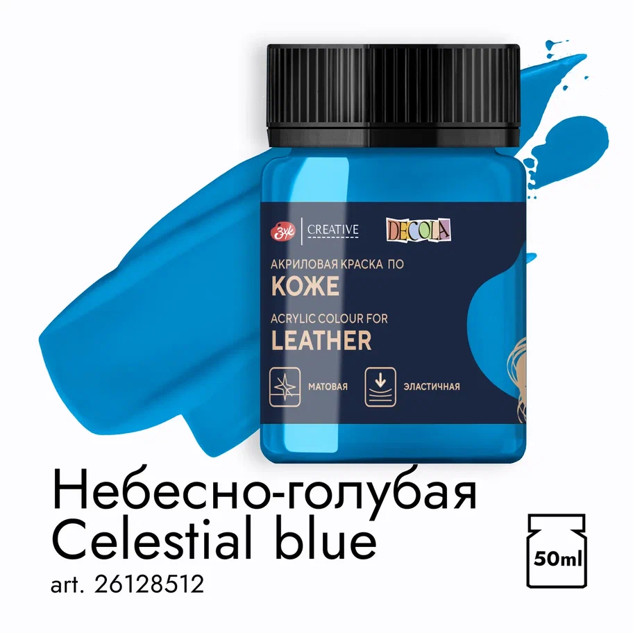 —Краска акриловая по коже DECOLA банка 50 мл, 512 Небесно-голубая NP-26128512