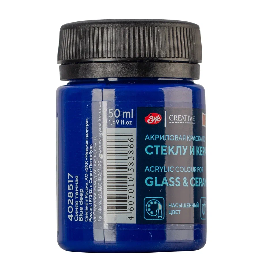 Краска акриловая по стеклу/керамике DECOLA банка 50 мл, 517 Синяя темная NP-4028517