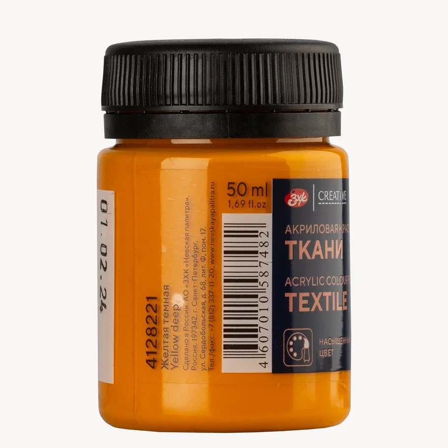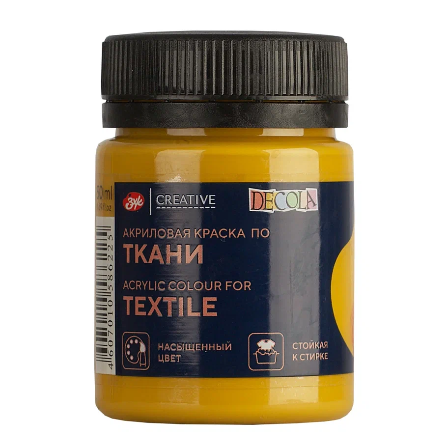 Краска акриловая по ткани DECOLA банка 50 мл, 221 Желтая темная NP-4128221